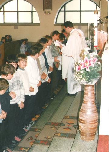 Sľuby skladali miništranti v nedeľu na „prvej“ sv. omši. Po nich nasledovala obliečka a potom sa všetci sľub-skladajúci miništranti zapojili do vykonávania svojej služby pri obetnom stole.
