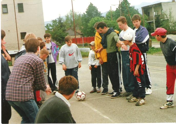 Popoludní sme sa všetci, radosťou naplnení mladí i deti stretli o 13.00 hodine na „malom“ ihrisku, kde sme rozdelili do dvoch družstiev, pričom sme boli navzájom pomiešaní – mládež s deťmi všetkých vekových kategórií. Celú akciu otvoril príhovorom náš brat Ján a vyzval nás, aby sme sa obrátili k tej, ktorej bol tento deň zasvätený – k Márii, modlitbou Zdravas. Radosť z hry mohla neustále rásť.