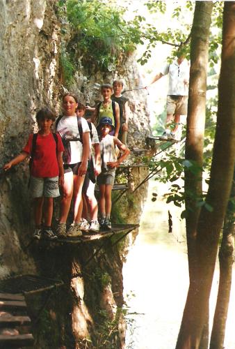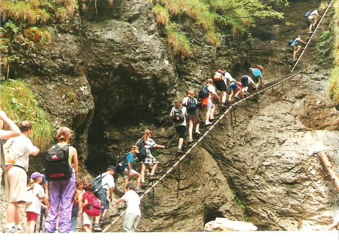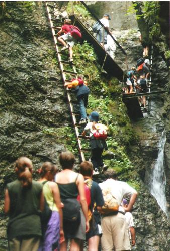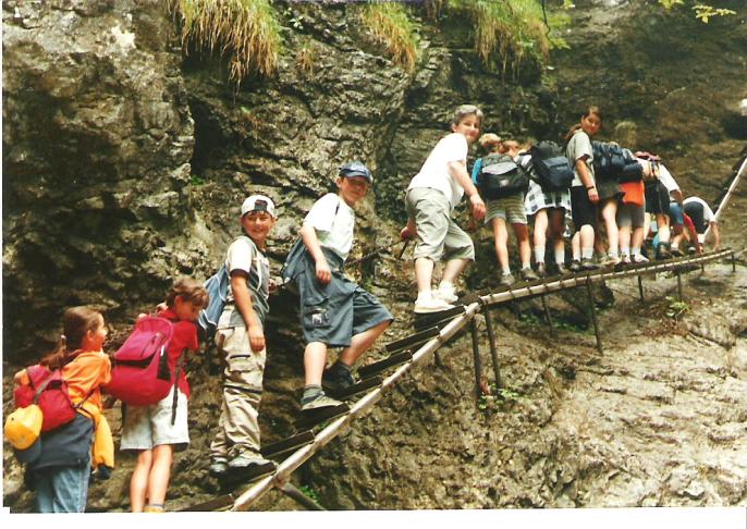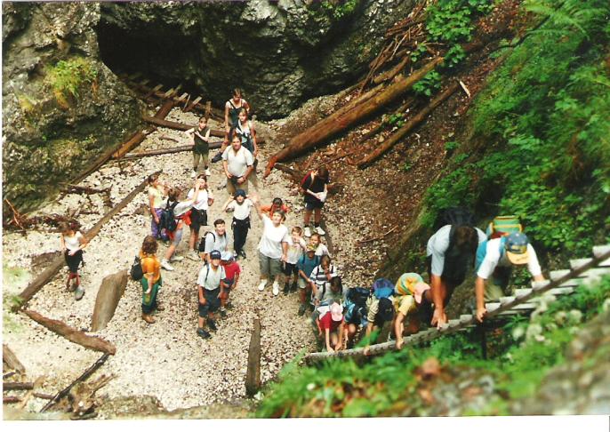 Asi tak za hodinku sme boli na mieste. Všetci sme sa vypratali z autobusu, podaktorí ešte ospalí, väčšina však plná energie a elánu. S batôžkami plnými dobrôt od našich maminiek sme sa pustili s vervou do cieľa našej výpravy – cez krásnu roklinu Suchá Belá na Kláštorisko. Cestou sme museli zdolať veľa rôznych prekážok: vysoké rebríky, reťaze, lavičky ponad potok, šmykľavé kamene… Deti preto vyhlásili, že to nie je raj, ale peklo. Ale všetci sme to v pohode zvládli, až na pár mokrých nôh…