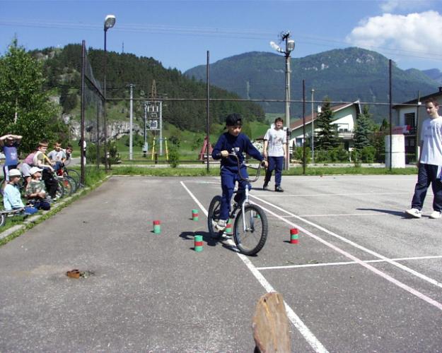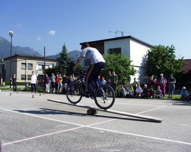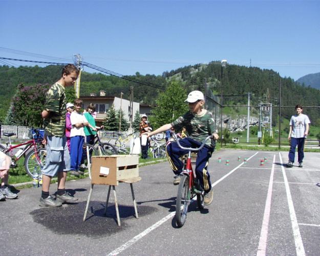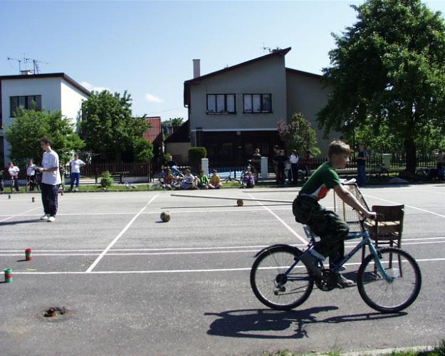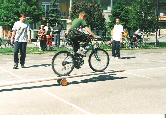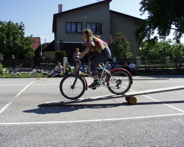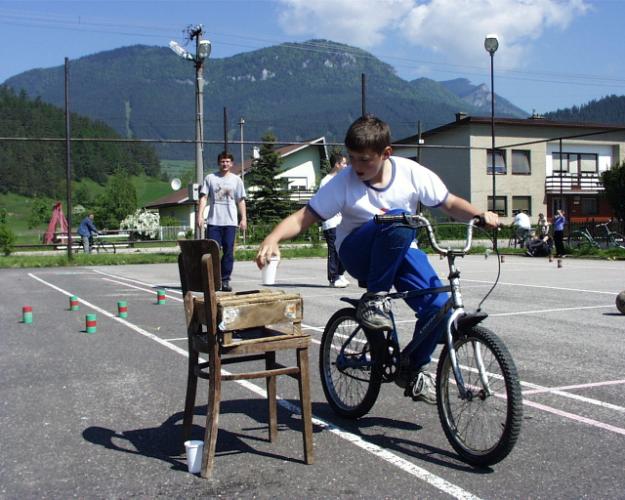 Trať bola zhotovená včas. Pri jej zdolávaní museli súťažiaci, samozrejme na bicykli, splniť niekoľko úloh. Prvou z nich bol „mini slalom“, ktorý poväčšine nespôsoboval žiadne problémy, za ním musel súťažiaci premiestniť pohár z vodou z jedného stanovišťa, na druhé, čo už poniektorým robilo menšie problémy. Ďalšia úloha patrila k tým adrenalínovým – súťažiaci musel zdolať preklápaciu lavičku, na ktorú bolo treba každému dobrú dávku odvahy, no môžem povedať, že väčšina to zvládla bravúrne. Za lavičkou nasledovala úloha, pri ktorej musel súťažiaci prejsť úzkym priestorom bez toho, aby sa dotkol bočných zábran. Toto začalo robiť väčšine dosť veľký problém, pretože sa sami presvedčili, že nie je jednoduché udržať bicykel v priamej stope, čo i len na dĺžku 4 metrov. Ďalej nasledovala posledná a myslím, že aj najnáročnejšia úloha, bol to špeciálny slalom v tvare päťky, ktorá je vyrazená na hráčskej kocke. Bolo veľmi jednoduché zablúdiť a mnohí sa tu trápili aj na viackrát. Kto túto prekážku zdolal, mohol šťastne dôjsť do vytúženého cieľa.