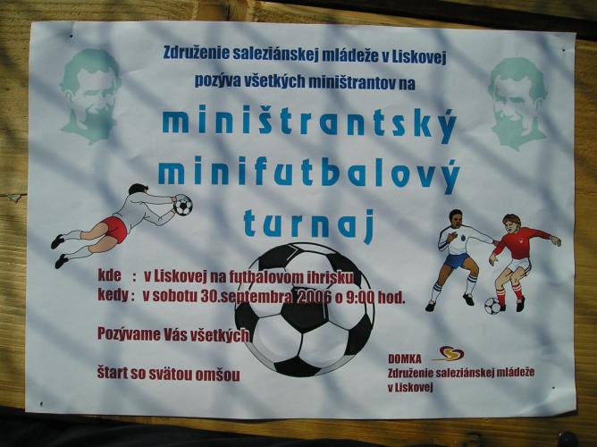 Stretli sme sa už tradične na futbalovom štadióne OŠK Lisková v sobotu 30. septembra o 9.00. Tento rok bola novinkou sv. omša na začiatku turnaja, ktorú odslúžil jezuita páter Ján Benkovský spolu s vdp. Petrom Kvasňákom z Lúčok. V kázni páter Benkovský vyzval miništrantov k čítaniu Sv. písma a to najmä ako súčasť ich miništrantskej služby pri sv. omši.