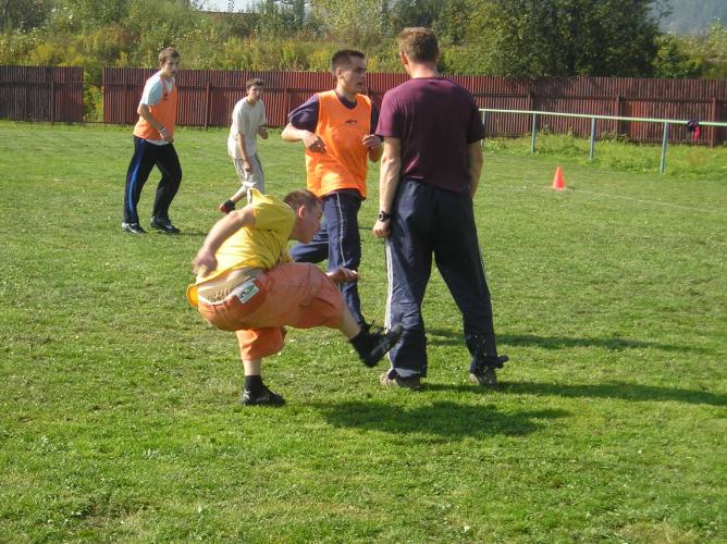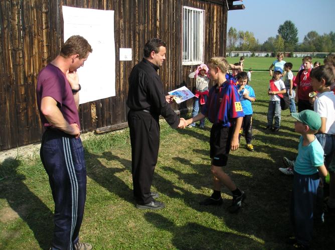 Po sv. omši nasledovalo rozlosovanie družstiev. Keďže sa nás zišlo vyše 80, bolo vytvorených 5 družstiev v kategórii mladší a 4 družstvá v kategórii starší. Hralo sa systémom 1x každý s každým (mladší 2×7 min., starší 2×10 min.). Čo sa týka organizácie, hralo sa na 2 ihriskách, mladší 5+1, starší 4+1. Pripravené bolo aj občerstvenie – párky a čaj, za prípravu ktorých ďakujeme ochotným dievčatám a p. Viharovej.