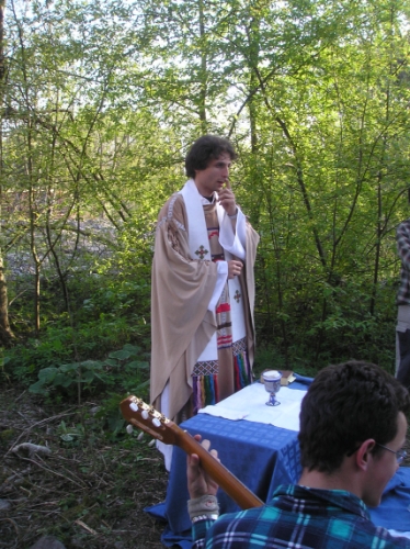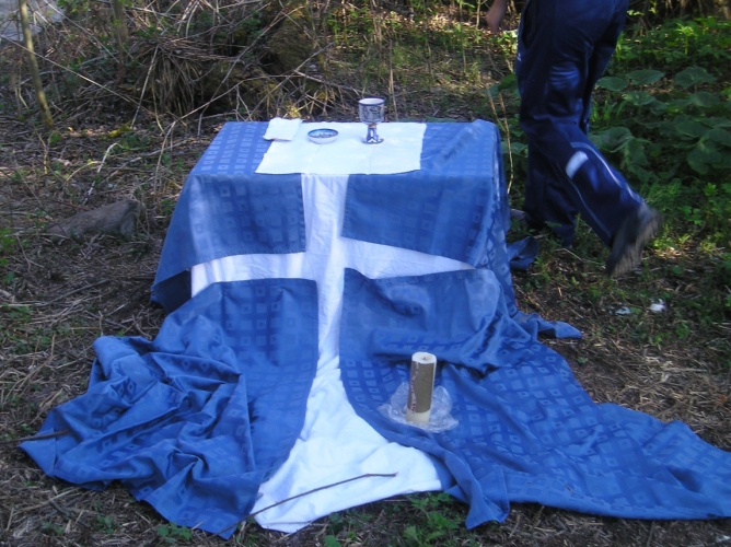 Posledné ráno sme sa zobudili do pirátskeho tábora. Na zobudenie sme mali ranné rozjímanie a potom bolo našou úlohou zobudiť ešte spiacich školiteľov, no poviem vám, vôbec to nebolo ľahké. Doobeda nás čakali „teoretické skúšky“, vybrali sme sa teda k jazierku, kde sme sa mali každý z nás vyzuť a ísť do vody. Dostávali sme otázky a kto nevedel odpoveď musel urobiť krok dozadu :-). Voda bola síce studená, ale takého skúšky som ešte nezažila. Keď sme sa vrátili, spoločne sme slávili svätú omšu, po ktorej nás čakal obed a ťažký odchod domov. Nikomu sa nechcelo, veď nám bolo spolu tak super… 🙂 Ale čas rozlúčky nastal a tak sa všetci vybrali smerom, z ktorého prišli…