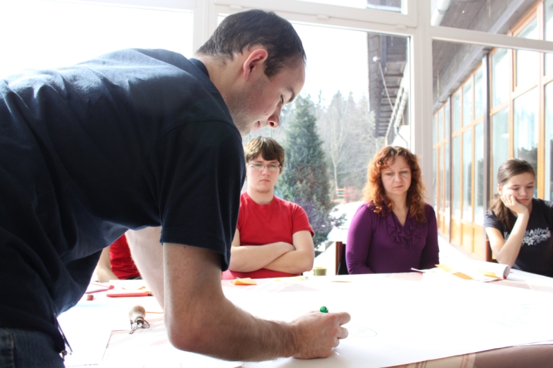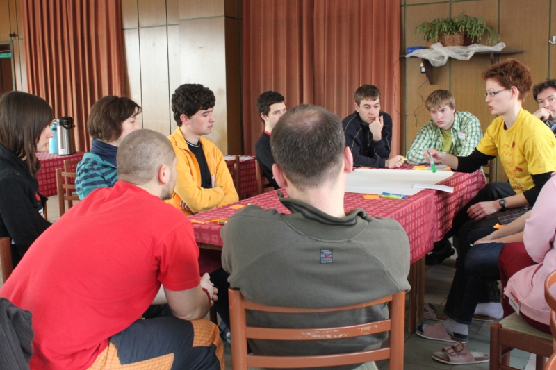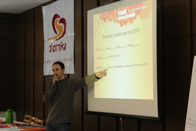 Čo sme tam robili? Nebolo to len nudné rokovanie. Začali sme omšou, potom sa zhodnotil domkársky rok. Nechýbala zoznamovačka. Sobota sa niesla v znamení rozoberania tém otvorenosť a animátorstvo. Pracovali sme v skupinkách. Cez siestu bol čas na prechádzku, tak sme zistili, že prostredie je tam ozaj krásne a vhodné na letné táborenie. Popoludní sme ešte rozoberali regrantingový systém, ide o bodovanie, na základe ktorého sa prideľujú financie strediskám. Našou úlohou je snažiť sa pracovať kvalitne a pracovať dosť veľa pre naše deti a pre našu mládež, ak chceme, aby nám prišlo čím viac peniažkov.