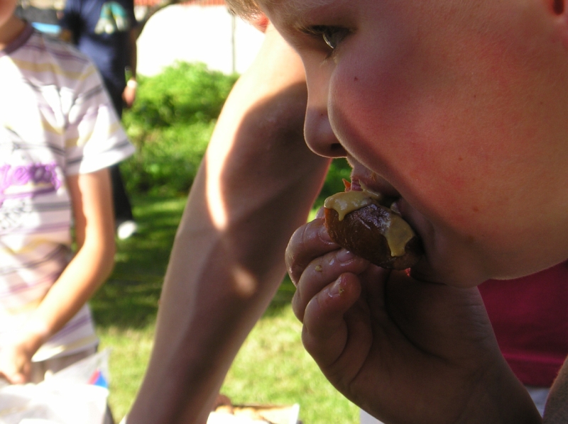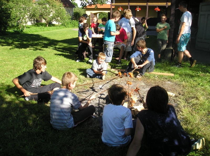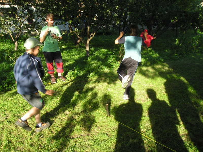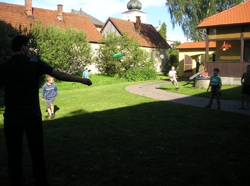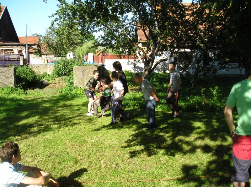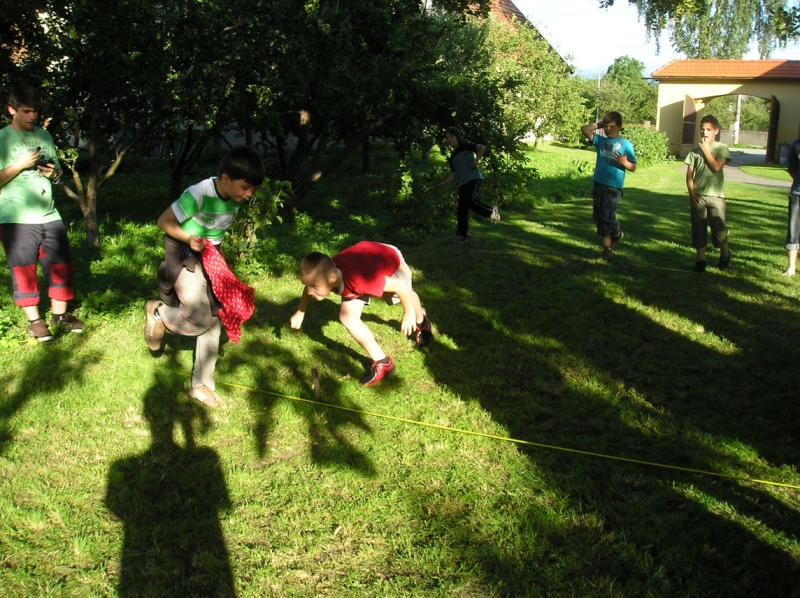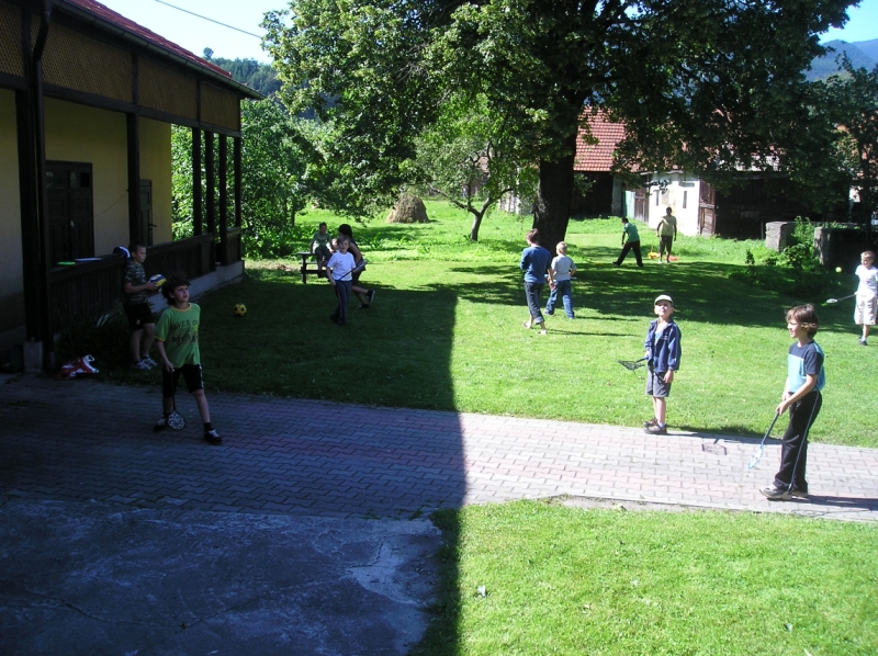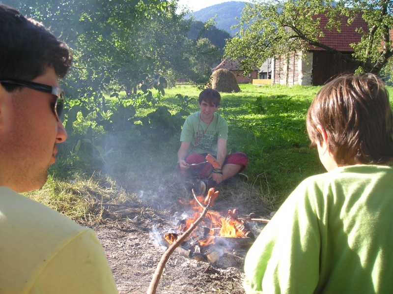Jedlo, malinovky a ihrisko boli prichystané mohlo sa začať zabávať. Chlapci šantili hrali futbal, lakros, … Neskôr sme pre chlapcov pripravili dve akčné hry, ktoré už mali ohlas na našich táboroch – a to Hu tu tu a Indiánska palička. Chlapci sa rozdelili do 3 tímov menovite Šmolkovia, Cigáni a Hooligans. Súboje boli fakt akčné a napínavé. Po dobojovaní sa chlapci pustili do špekačiek a dobrôt.