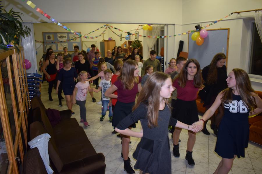 Celé to začalo presne o 17:00 príhovorom našej moderátorky Barči a modlitbou. Okrem tanečnej zábavy nechýbali súťaže ako napríklad metlový, balónový a stoličkový tanec. Všetci víťazi boli odmenení cenami. O zábavu sa staral Števko, ktorý bol naším hlavným DJ-om a pripravil svetelnú šou. Celá tancovačka skončila pre mladších účastníkov o 20:00 a starší sa zabávali do rána bieleho (nie, robím si srandu, len do 22:00 :D).