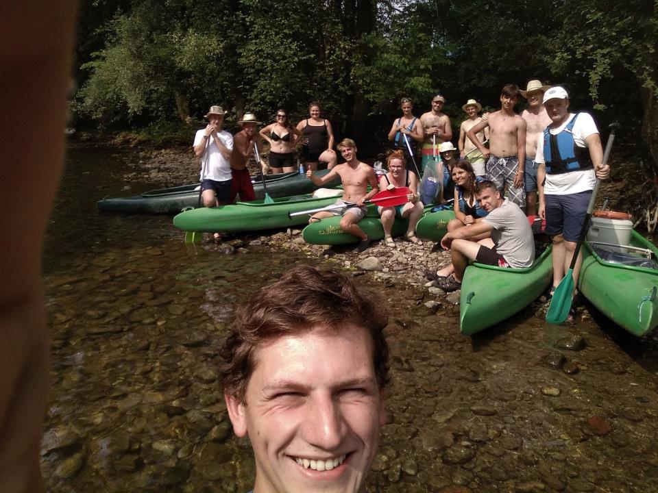 Naše stredisko má už nejaké tie skúsenosti so splavovaním riek, no od toho posledného, ktorý sa uskutočnil v auguste 2013 nás delia štyri roky. Preto sa partia mladých rozhodla opäť nasadnúť do kanoe a vyskúšať svoje schopnosti, niektorí aj po prvýkrát, a zdolať spomínanú rieku Hron. Túto partiu tvorilo 16 ľudí, z toho 11 chlapov a 5 žien, dokopy 8 kanoe.