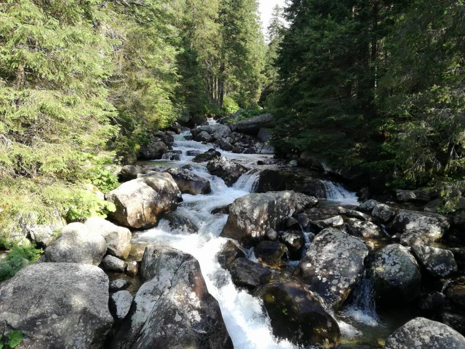 Začiatok augusta priniesol krásne jasné a mimoriadne teplé počasie, a tak sme sa rozhodli to využiť a spraviť si nejakú menej náročnú túru do Tatier, aby sme to v tom teple v pohode všetci zvládli. Ráno sme vyrazili o 4:49 (náročné vstávanie :D) z Liskovej do Štrby, odtiaľ sme prestúpili na zubačku na Štrbské pleso, odkiaľ sme znovu prestúpili na zubačku na zastávku Popradské pleso. Okolo 6:30 sme tam dorazili, a naša túra sa teda mohla začať.