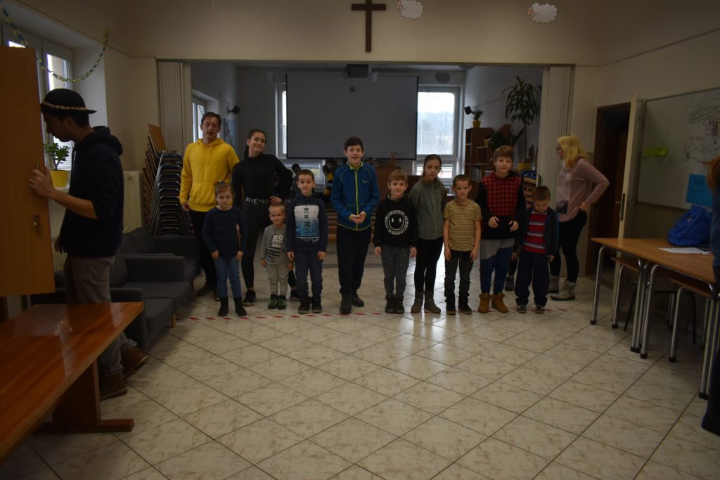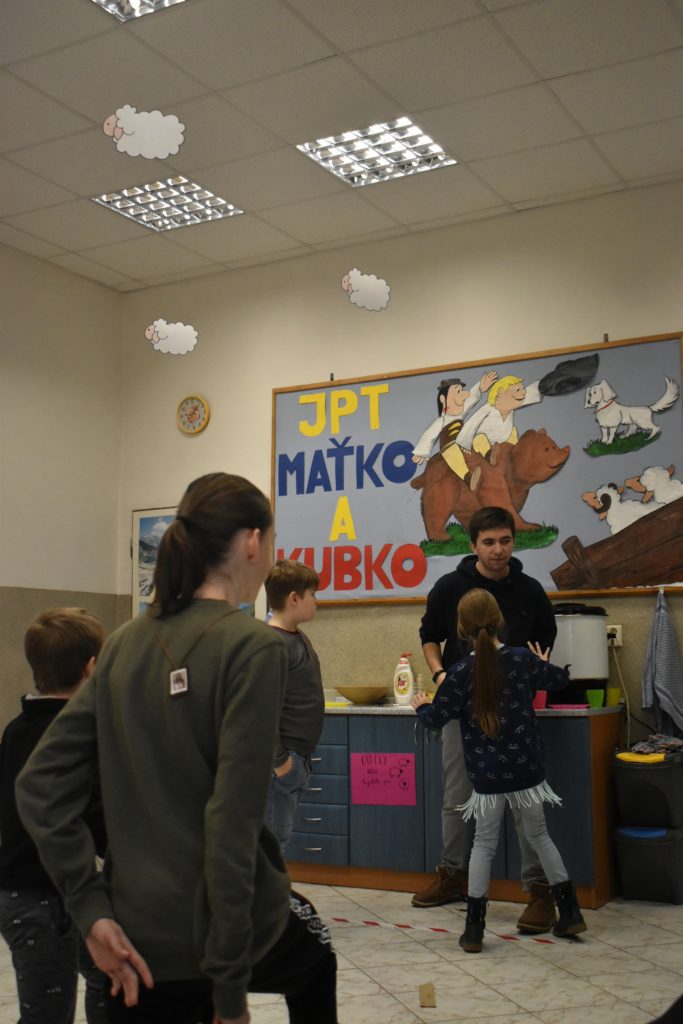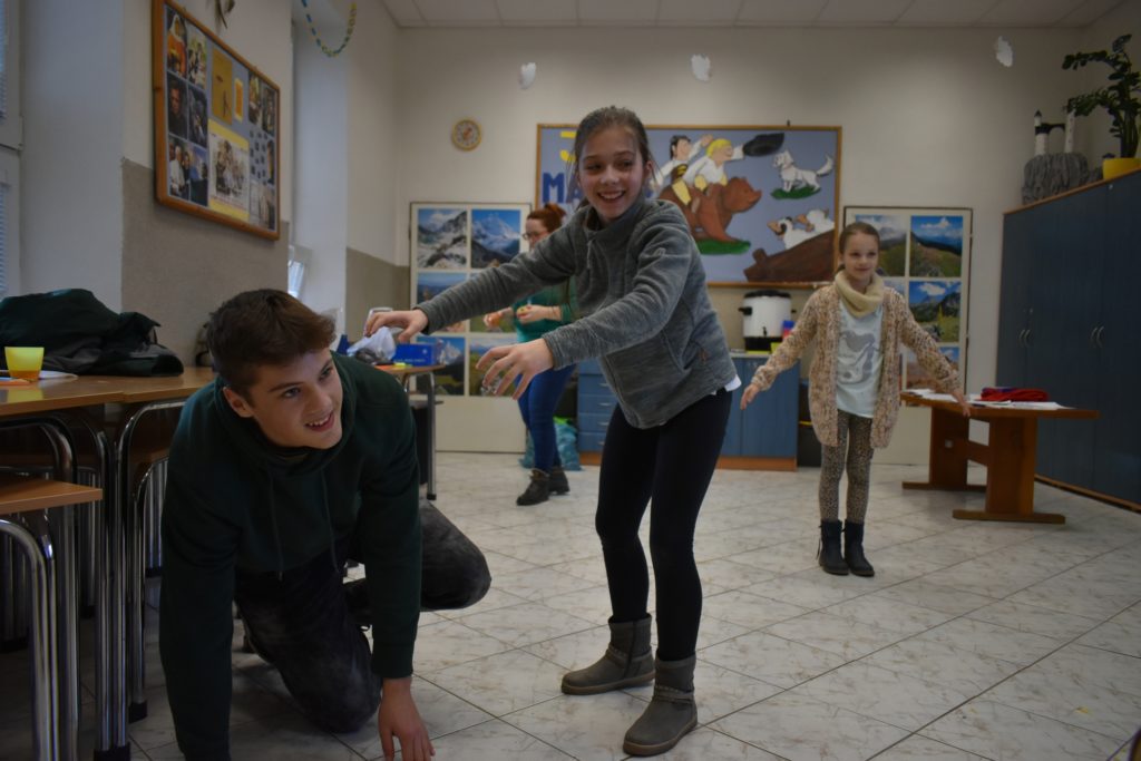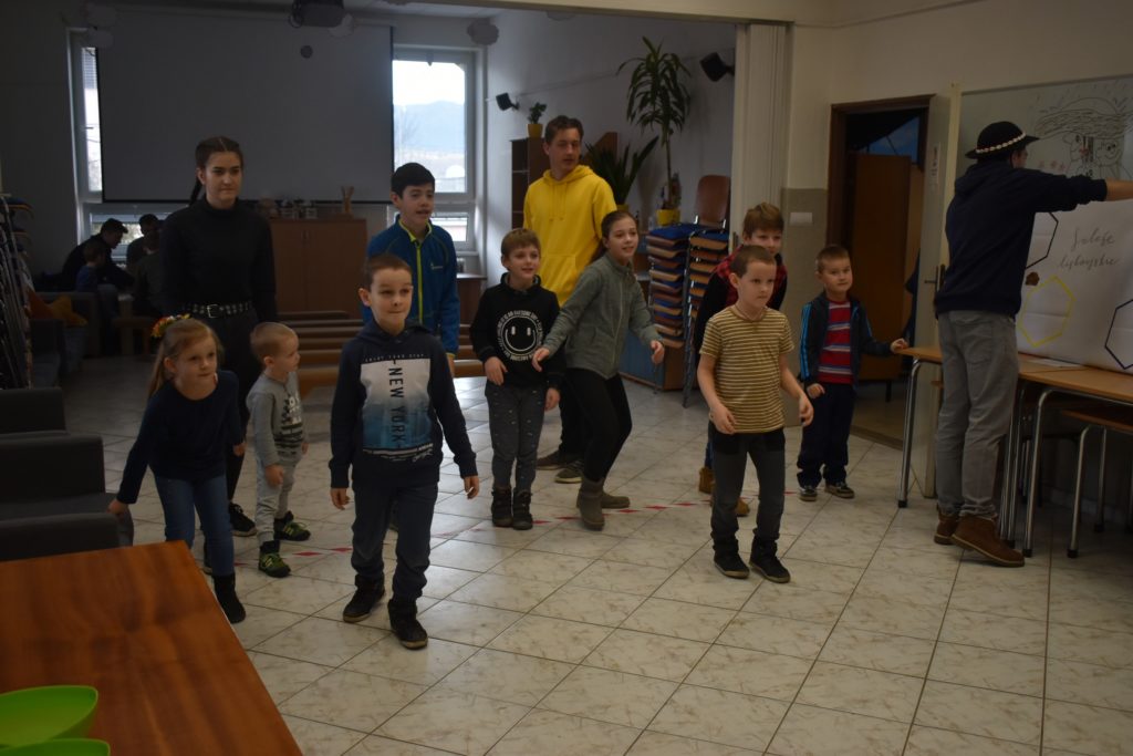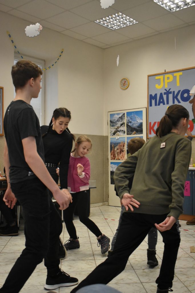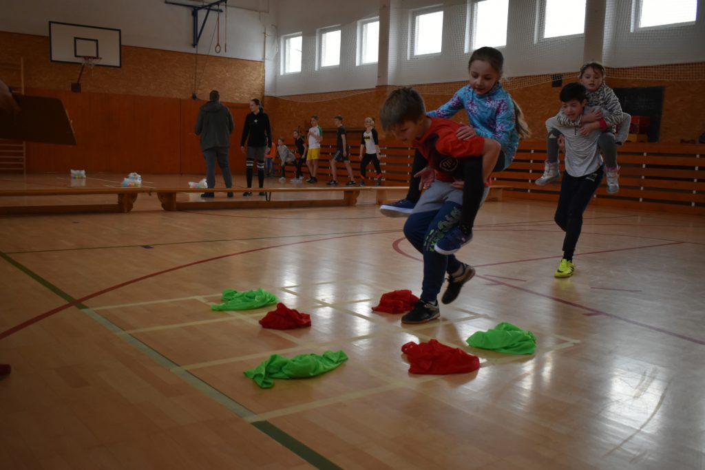 Vo štvrtok sme sa do telocvične presunuli, reku, keď chcú po holiach behať, musia kondičku trošku nabrať! Ale darmo budeš len krepo behať, keď ti všetky ovečky vlk požerie! A tak sa v telocvični učili aj ako vlkovi cez rozum prejsť. Poobede si ich zobral do parády logopéd Bač. Val. Tomáš, lebo to sú ti dneská len samé ajfony, noutbuky, bajdvej a iné novoty a tak ich trošku nárečia poučil a učil aj najnovším technikám komunikácie, keď si tak ďaleko od seba, že by si sa nepočul navzájom.