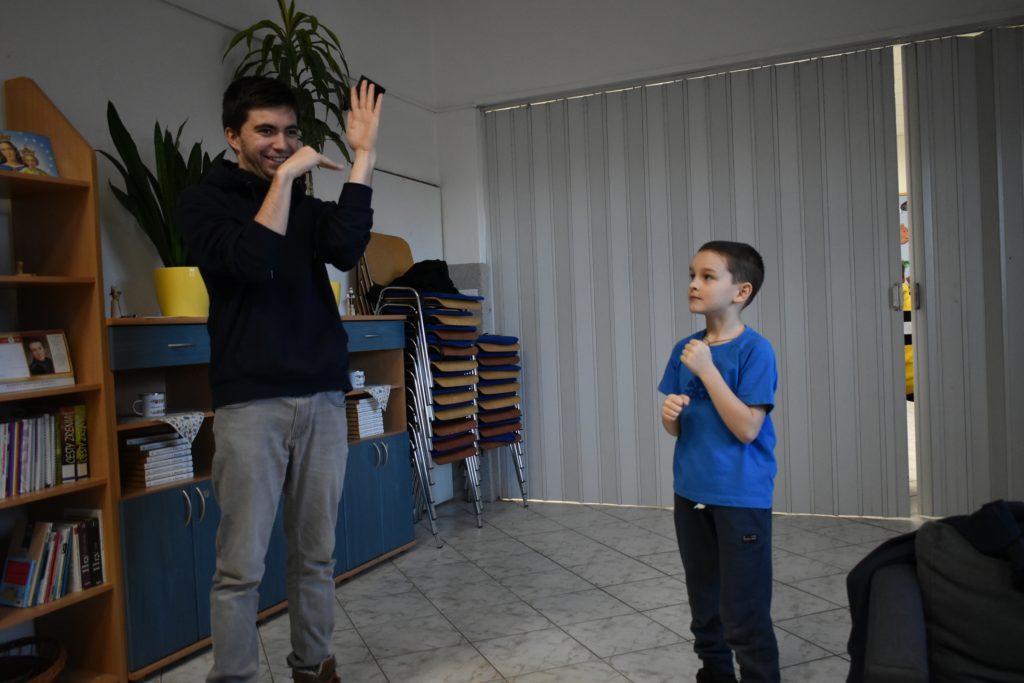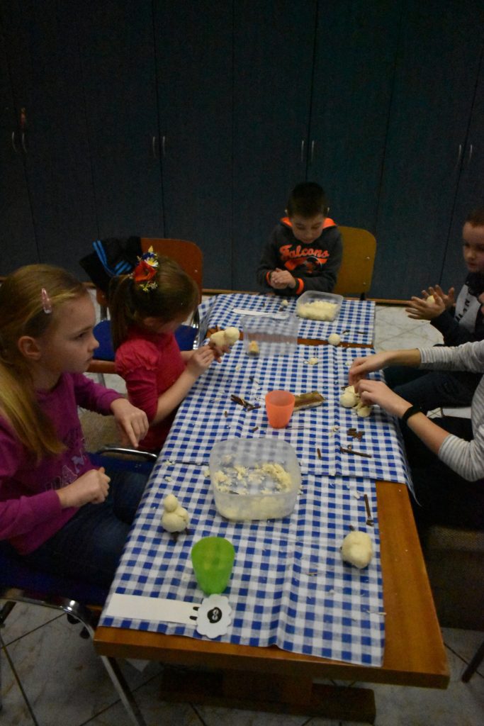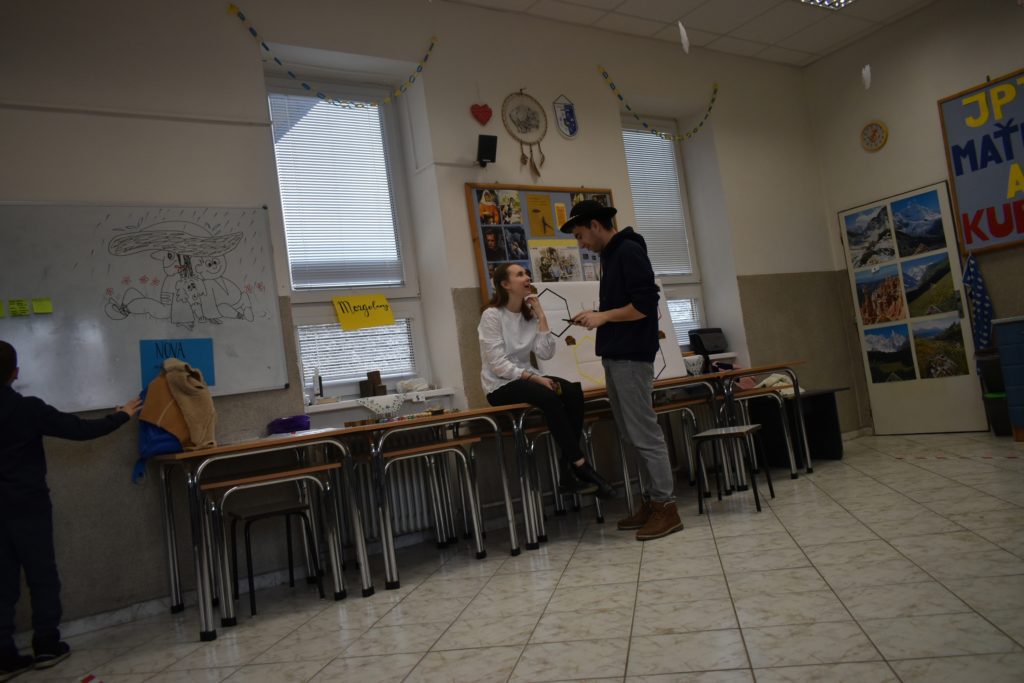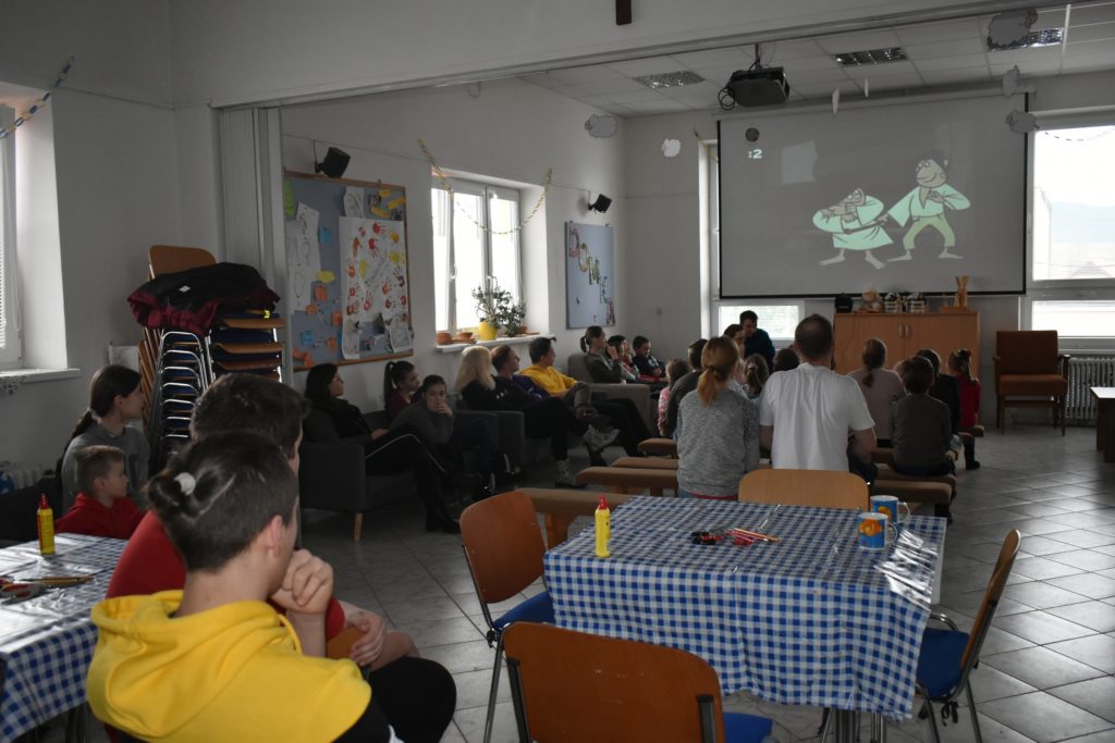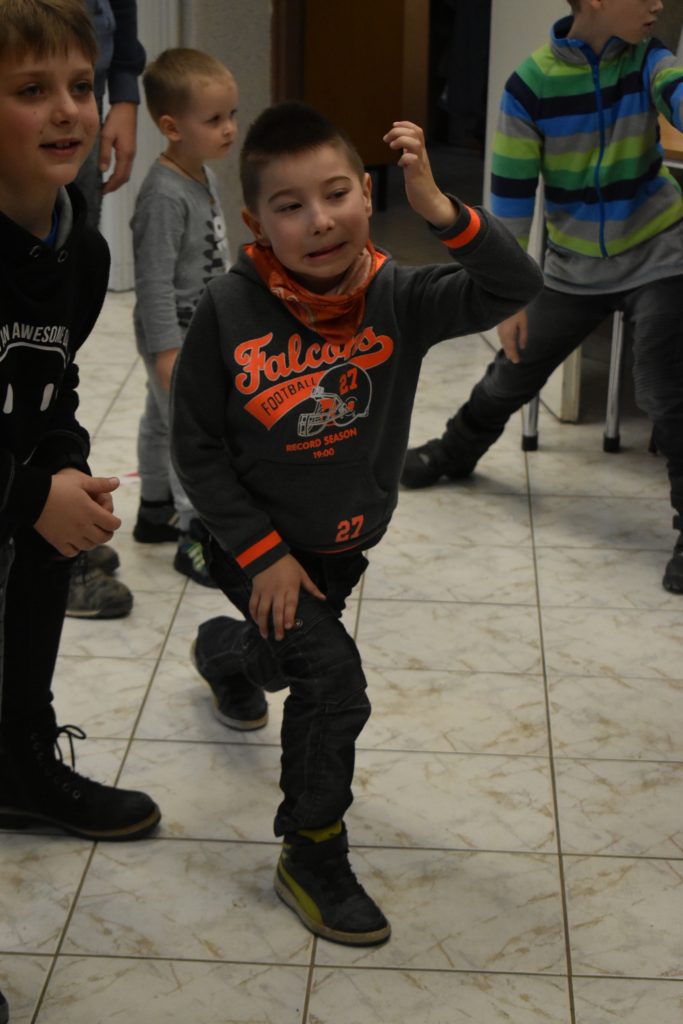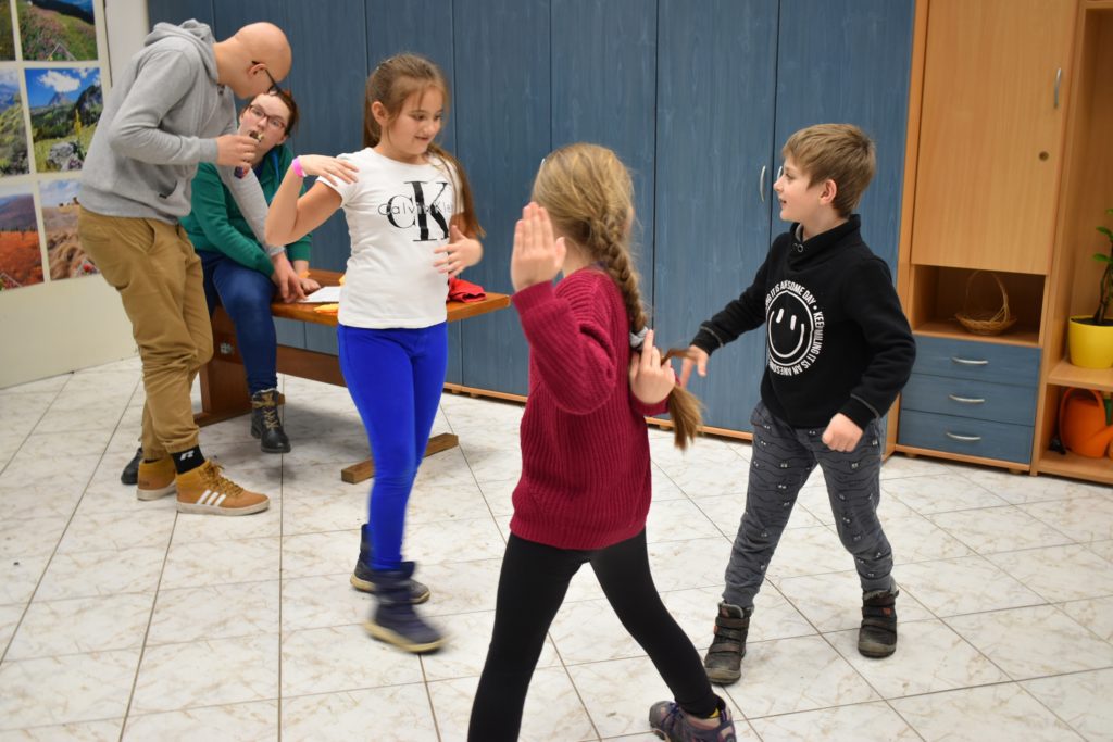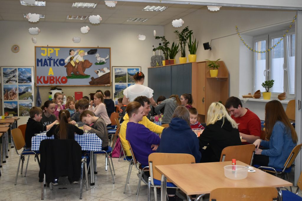 Vo štvrtok sme sa do telocvične presunuli, reku, keď chcú po holiach behať, musia kondičku trošku nabrať! Ale darmo budeš len krepo behať, keď ti všetky ovečky vlk požerie! A tak sa v telocvični učili aj ako vlkovi cez rozum prejsť. Poobede si ich zobral do parády logopéd Bač. Val. Tomáš, lebo to sú ti dneská len samé ajfony, noutbuky, bajdvej a iné novoty a tak ich trošku nárečia poučil a učil aj najnovším technikám komunikácie, keď si tak ďaleko od seba, že by si sa nepočul navzájom.