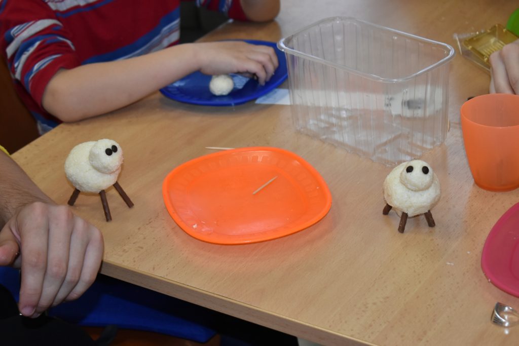 Druhý deň sa najprv snažili všetky ovce do košiara zahnať a poobede si záložky robili, aby vedeli, kde v almanachu skončili a k tomu si tvarovali ovečky s vílou Natálkou. No ale neviem čomu sa teraz čuduješ. Hej! Ovečky z kokosu so salkom tvarovali, lebo to ti nie je zábava korbáčiky ťahať a oštiepky tvaruvať. To ti chce kus umenia do seba a keď do obedu ovce zaháňaš, tak ti aj vyhladne.
