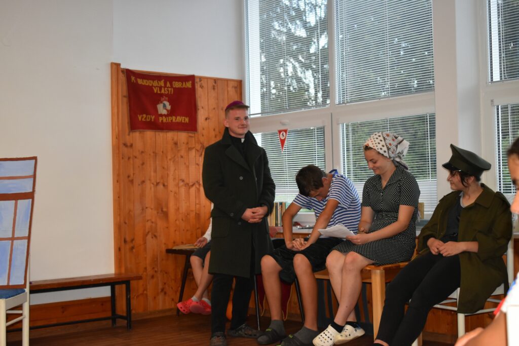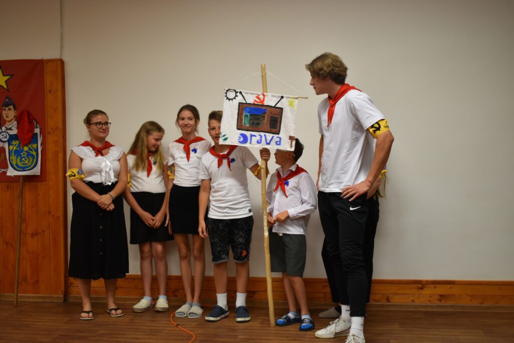 Vybrali sme naozaj zaujímavú tému, ktorou bol komunizmus. Naši tábornici na Škutovkách v Liptovskej Osade boli zrazu pionieri a iskry, a náš organizačný tím stvárňoval zas politických predstaviteľov a zväzákov.