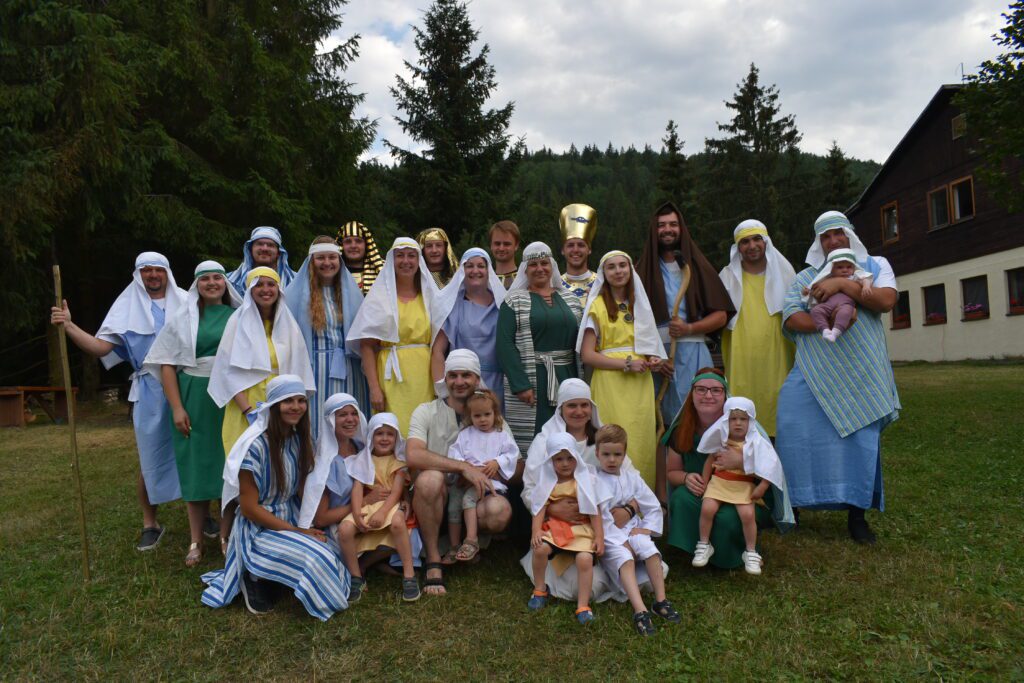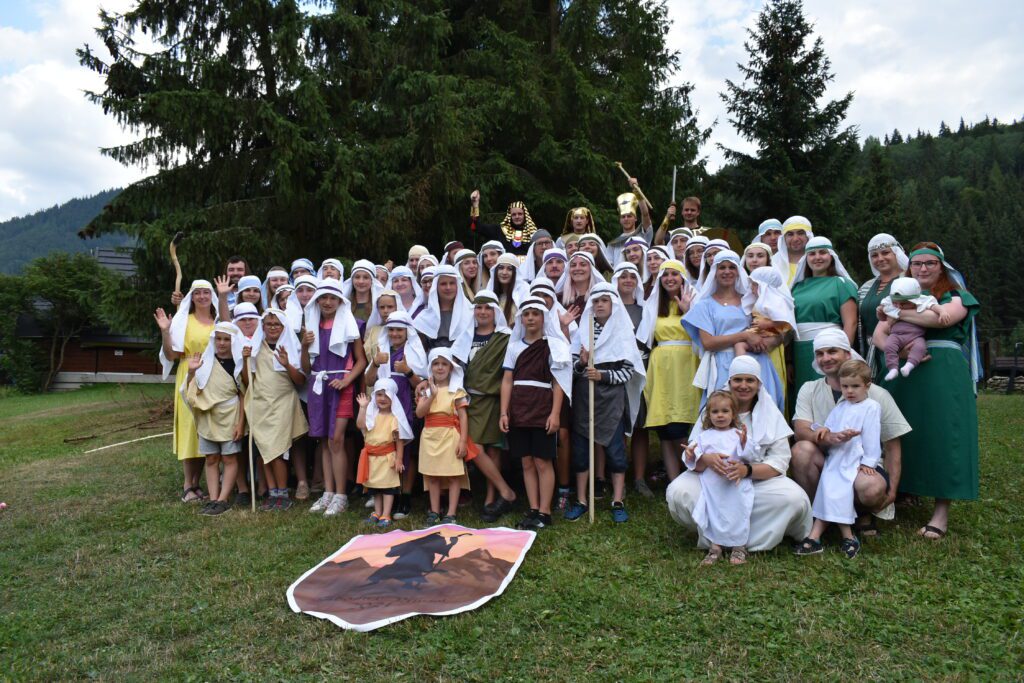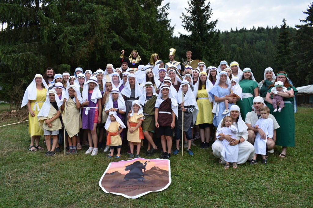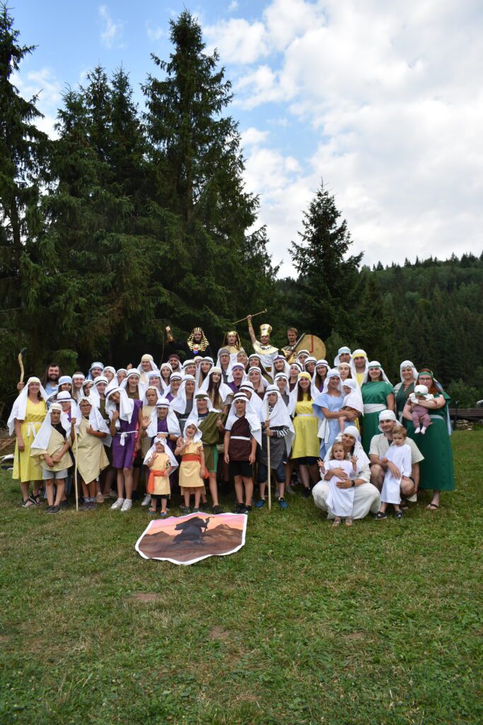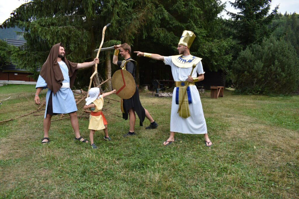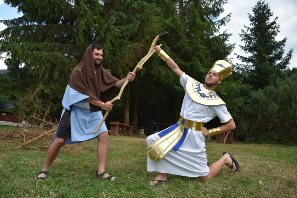 Stalo sa to už dávno, ale spomínam si na to, ako by sa to stalo včera. Náš utrápený ľud sedel na brehu Nílu a volal o pomoc. A tak sme sa vydali spoznať náš národ, aby sme vedeli, ako ďalej. Na začiatku tejto cesty nás všetko, čo sme sa naučili, hieroglyfy, naša história, maskovanie, priviedlo k listom od našich otcov. Keď sme spoznali nášho IT (istý truľo) faraóna, ktorý náš národ nemal v láske a nariadil nám robotu tak náročnú, že sa to ťažko zvládalo, snažili sme sa mu pomôcť. Každý ako vládal – niekto viac, niekto menej, niekto by mohol viac, ale nezvládal logistiku. Potom vystúpil Mojžiš, Izraelita vychovaný pod strechou paláca. Uznávam, ani ja som ho nemal veľmi rád, veď hodoval, zatiaľ čo jeho ľud umieral hladom. Ale vykľul sa z neho celkom sympaťák. Začalo sa niečo, čo nazývam 10 Božích rán – fajn názov – verím, že sa uchytí. Tú trpkú chuť Nílu plného krvi ako by som stále cítil v mojich ústach; tie žaby ako by vždy skákali späť do domu, keď sme ich odtiaľ vyhodili; úroda, ktorá sa nám nepodarila uchrániť. Och, iste sa pýtate, prečo Boh trestal nás. Nie, On trestal Egypťanov, ale neboli nám ľahostajní, niektorí pamätali ešte na nášho predka Jozefa, ktorý Egypt priviedol k nepoznanej sláve, a tak boli našimi priateľmi, ktorým sme sa snažili pomôcť. Boli to naozaj ťažké rany, ale najťažšia bola faraónova propaganda, ktorá sa mi aj po tej dobe vnára do mojich snov a znie v mojich ušiach, ale my sme si „nenechali pokaziť dníííček takýmito nechutnosťamiiii“. Tieto rany nás ale priviedli k veľmi zábavnej hre: odpáľ žabu. Táto hra sa hrá na ihrisku v tvare štvorca, kde sú rozložené 4 kamene a hrá sa tak, že súper ti nadhodí niečo pripomínajúce žabu a ty sa ju palicou snažíš odpáliť čo najďalej a potom obehnúť okolo všetkých 4 kameňov. Súperov tím sa snaží tú žabu dostať naspäť do domu, čiže na prvý kameň skôr ako ty stihneš dobehnúť domov. Hráme to ako symbolickú pripomienku toho, čo nastalo po všetkých týchto ranách. Ale to by som predbiehal. Každý večer nás bavil jeden kmeň, ktorý nám ukazoval naše dejiny. Samozrejme, máme kopec detí a tie len ťažko zaujať, a tak každý kmeň spracoval krásne predstavenie, ktoré nám všetko priblížilo. Potom prišiel večer, ktorý sme spolu strávili pri baránkovi, a na druhý deň sa stal zázrak – po rokoch v službe Egypta sme opustili krajinu. A tak sme putovali s Mojžišom. Koľký strach bol v nás, keď sme zbadali IT faraóna, ktorý nás prenasledoval. Ale jeho aj jeho armádu zmietlo do mora. Potom sme putovali smerom na púšť. Keď sme zastali pri turistickej značke, Mojžiš poodišiel a keď sa vrátil, priniesol dve kamenné tabule, ktoré na dobu určitú uložil do plátennej provizórnej archy, ktorú poniesol Damián – odvážny mladý muž. Ako sme cestovali po púšti, uvedomili sme si jednu dôležitú skutočnosť. Musíme zaznamenať naše dejiny, ale ako? A tak najstarší starejší vymyslel niečo prevratné. Nakreslíme ich na kameň. Áno, možno sa objavili jeden, dva kamene, pri ktorých ďakujeme Bohu za možnosť predávať naše dejiny ústne, ale aj tie boli hotové umelecké diela. Samozrejme, aby sa celý tento plán vydaril, náš najstarší starejší sa na určitú dobu pobral do ústrania pre rozhovor s Bohom, aby dostal milosť v Božích očiach a bolo požehnané to, čo robí. Potom sme zistili, že sa k nám blíži armáda, a tak sme začali trénovať zvedov a zisťovali sme, ktorý kmeň má najlepšie predpoklady, a tak sme vymysleli test. V tomto teste sa proti sebe postavili dva kmene – najlepší z najlepších. Ich úlohou bolo pribehnúť k jednej kartičke na kraji poľa, na ktorej bolo veľa obrazov, potom pribehnúť ku kartičke v strede poľa a zistiť, ktoré dva symboly sú na jednej a druhej kartičke rovnaké. Ak na to prišli, ich súper ich mohol vždy chytiť. Tento test pre zjednodušenie do budúcnosti nazveme „izraelitská palička“. Prečo to bolo dôležité? Pretože sme potrebovali šikovných zvedov, ktorí budú všímaví, s dobrou pamäťou a dostatočne rýchli a bystrí, aby utiekli, ak by ich náš nepriateľ chytil. Tieto schopnosti, ktoré si otestovali, mohli hneď večer využiť pri získavaní informácií o blížiacej sa armáde. Vybrali sa na nebezpečnú nočnú misiu, pri ktorej získali veľa informácií. A nakoniec prišla bitka, v ktorej sme aj vďaka nočnej práci porazili nepriateľa, ktorý bol silnejší a tak plne uverili v Boha. Každý kmeň na tom mal zásluhu – niekto viac, niekto menej, ale spolu sme to dokázali . Ešte sme sa kvôli hriechu, ktorého som sa stal súčasťou, aj keď len svojou ľahostajnosťou, nedostali do zasľúbenej zeme, ale už sa s mojím koncom blíži aj čas, kedy to príde. A tak predtým, ako to príde, píšem tento list aj ďalším generáciám, aby vedeli, prečo je náš Boh veľký a Mojžiš super chlapík. Pretože len s palicou a dôverou v Boha prekonal muža s mečom a armádou, ktorý sám seba označoval za boha.