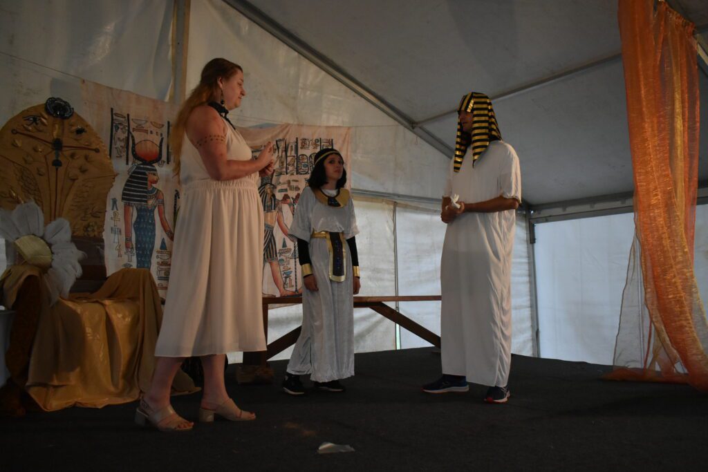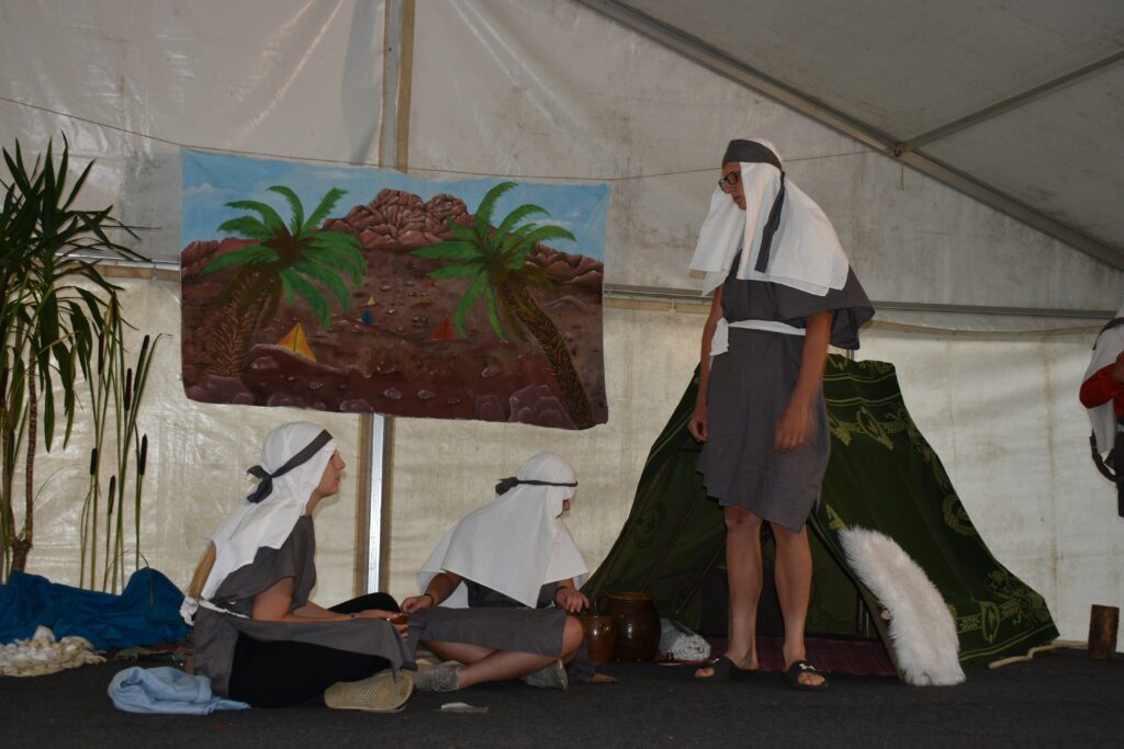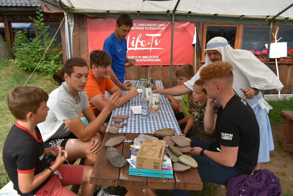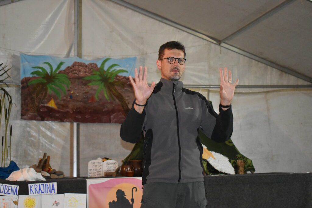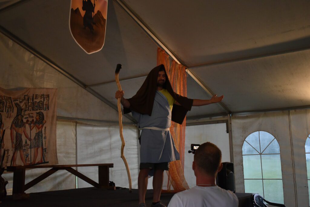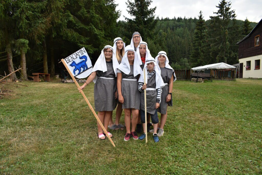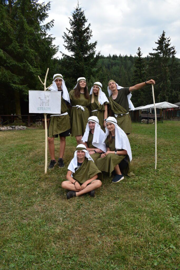 Stalo sa to už dávno, ale spomínam si na to, ako by sa to stalo včera. Náš utrápený ľud sedel na brehu Nílu a volal o pomoc. A tak sme sa vydali spoznať náš národ, aby sme vedeli, ako ďalej. Na začiatku tejto cesty nás všetko, čo sme sa naučili, hieroglyfy, naša história, maskovanie, priviedlo k listom od našich otcov. Keď sme spoznali nášho IT (istý truľo) faraóna, ktorý náš národ nemal v láske a nariadil nám robotu tak náročnú, že sa to ťažko zvládalo, snažili sme sa mu pomôcť. Každý ako vládal – niekto viac, niekto menej, niekto by mohol viac, ale nezvládal logistiku. Potom vystúpil Mojžiš, Izraelita vychovaný pod strechou paláca. Uznávam, ani ja som ho nemal veľmi rád, veď hodoval, zatiaľ čo jeho ľud umieral hladom. Ale vykľul sa z neho celkom sympaťák. Začalo sa niečo, čo nazývam 10 Božích rán – fajn názov – verím, že sa uchytí. Tú trpkú chuť Nílu plného krvi ako by som stále cítil v mojich ústach; tie žaby ako by vždy skákali späť do domu, keď sme ich odtiaľ vyhodili; úroda, ktorá sa nám nepodarila uchrániť. Och, iste sa pýtate, prečo Boh trestal nás. Nie, On trestal Egypťanov, ale neboli nám ľahostajní, niektorí pamätali ešte na nášho predka Jozefa, ktorý Egypt priviedol k nepoznanej sláve, a tak boli našimi priateľmi, ktorým sme sa snažili pomôcť. Boli to naozaj ťažké rany, ale najťažšia bola faraónova propaganda, ktorá sa mi aj po tej dobe vnára do mojich snov a znie v mojich ušiach, ale my sme si „nenechali pokaziť dníííček takýmito nechutnosťamiiii“. Tieto rany nás ale priviedli k veľmi zábavnej hre: odpáľ žabu. Táto hra sa hrá na ihrisku v tvare štvorca, kde sú rozložené 4 kamene a hrá sa tak, že súper ti nadhodí niečo pripomínajúce žabu a ty sa ju palicou snažíš odpáliť čo najďalej a potom obehnúť okolo všetkých 4 kameňov. Súperov tím sa snaží tú žabu dostať naspäť do domu, čiže na prvý kameň skôr ako ty stihneš dobehnúť domov. Hráme to ako symbolickú pripomienku toho, čo nastalo po všetkých týchto ranách. Ale to by som predbiehal. Každý večer nás bavil jeden kmeň, ktorý nám ukazoval naše dejiny. Samozrejme, máme kopec detí a tie len ťažko zaujať, a tak každý kmeň spracoval krásne predstavenie, ktoré nám všetko priblížilo. Potom prišiel večer, ktorý sme spolu strávili pri baránkovi, a na druhý deň sa stal zázrak – po rokoch v službe Egypta sme opustili krajinu. A tak sme putovali s Mojžišom. Koľký strach bol v nás, keď sme zbadali IT faraóna, ktorý nás prenasledoval. Ale jeho aj jeho armádu zmietlo do mora. Potom sme putovali smerom na púšť. Keď sme zastali pri turistickej značke, Mojžiš poodišiel a keď sa vrátil, priniesol dve kamenné tabule, ktoré na dobu určitú uložil do plátennej provizórnej archy, ktorú poniesol Damián – odvážny mladý muž. Ako sme cestovali po púšti, uvedomili sme si jednu dôležitú skutočnosť. Musíme zaznamenať naše dejiny, ale ako? A tak najstarší starejší vymyslel niečo prevratné. Nakreslíme ich na kameň. Áno, možno sa objavili jeden, dva kamene, pri ktorých ďakujeme Bohu za možnosť predávať naše dejiny ústne, ale aj tie boli hotové umelecké diela. Samozrejme, aby sa celý tento plán vydaril, náš najstarší starejší sa na určitú dobu pobral do ústrania pre rozhovor s Bohom, aby dostal milosť v Božích očiach a bolo požehnané to, čo robí. Potom sme zistili, že sa k nám blíži armáda, a tak sme začali trénovať zvedov a zisťovali sme, ktorý kmeň má najlepšie predpoklady, a tak sme vymysleli test. V tomto teste sa proti sebe postavili dva kmene – najlepší z najlepších. Ich úlohou bolo pribehnúť k jednej kartičke na kraji poľa, na ktorej bolo veľa obrazov, potom pribehnúť ku kartičke v strede poľa a zistiť, ktoré dva symboly sú na jednej a druhej kartičke rovnaké. Ak na to prišli, ich súper ich mohol vždy chytiť. Tento test pre zjednodušenie do budúcnosti nazveme „izraelitská palička“. Prečo to bolo dôležité? Pretože sme potrebovali šikovných zvedov, ktorí budú všímaví, s dobrou pamäťou a dostatočne rýchli a bystrí, aby utiekli, ak by ich náš nepriateľ chytil. Tieto schopnosti, ktoré si otestovali, mohli hneď večer využiť pri získavaní informácií o blížiacej sa armáde. Vybrali sa na nebezpečnú nočnú misiu, pri ktorej získali veľa informácií. A nakoniec prišla bitka, v ktorej sme aj vďaka nočnej práci porazili nepriateľa, ktorý bol silnejší a tak plne uverili v Boha. Každý kmeň na tom mal zásluhu – niekto viac, niekto menej, ale spolu sme to dokázali . Ešte sme sa kvôli hriechu, ktorého som sa stal súčasťou, aj keď len svojou ľahostajnosťou, nedostali do zasľúbenej zeme, ale už sa s mojím koncom blíži aj čas, kedy to príde. A tak predtým, ako to príde, píšem tento list aj ďalším generáciám, aby vedeli, prečo je náš Boh veľký a Mojžiš super chlapík. Pretože len s palicou a dôverou v Boha prekonal muža s mečom a armádou, ktorý sám seba označoval za boha.