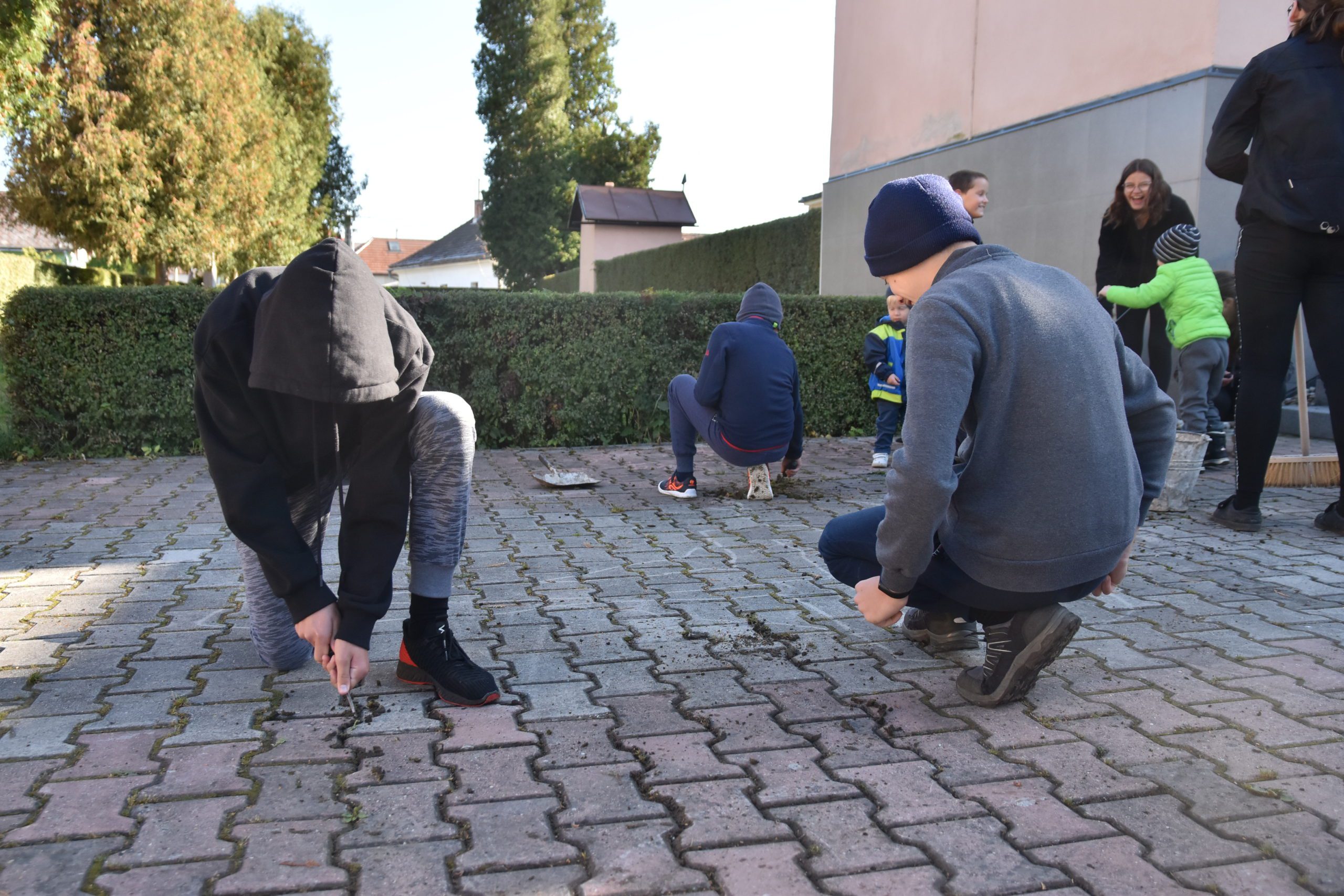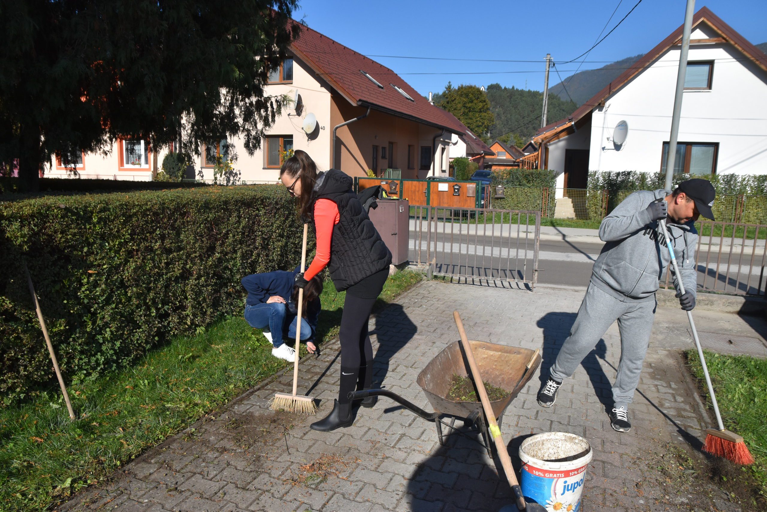 Ako nastalo jesenné obdobie, tak sme sa spoločne rozhodli vyčistiť okolie kostola. Neváhali sme a do práce sme sa pustili s plným nasadením hneď ráno o 9:30. Každý si doniesol vlastný šrobováčik a od pána farára sme požičali metly, lopaty a fúriky a hor sa do roboty. Spoločnými silami sme sa pustili do práce a začali sme čistiť chodníky od machu a stojany na bicykle od rôznej buriny. Na brigádu prišli mladší i starší, dobrá nálada nechýbala a počasie nám prialo. Možno sme zle videli ale na brigádu prišli rôzne  mužské liskovské legendy ktoré len tak nestretneš.( kukni album). Popri práci nám hrala hudba a úsmev na tvári nikomu  nechýbal. Za 2 a pol hodinky sme vyčistili čo sa dalo. Nakoniec sme sa občerstvili teplým čajom, bagetkou, ktorú animátorky deň predtým nachystali a doboštičkou. Našu pracovnú jednotku prišiel pozdraviť aj Pán farár s úsmevom a povzbudením. O 12:00 sme sa spoločne s Pánom farárom pomodlili Anjel Pána. Práca nám šla od ruky, a pomaly okolo 1 sme  sa dopracovali k finálnemu výsledku.