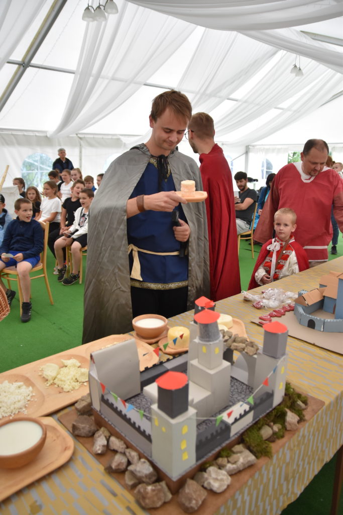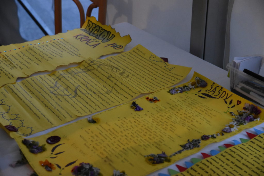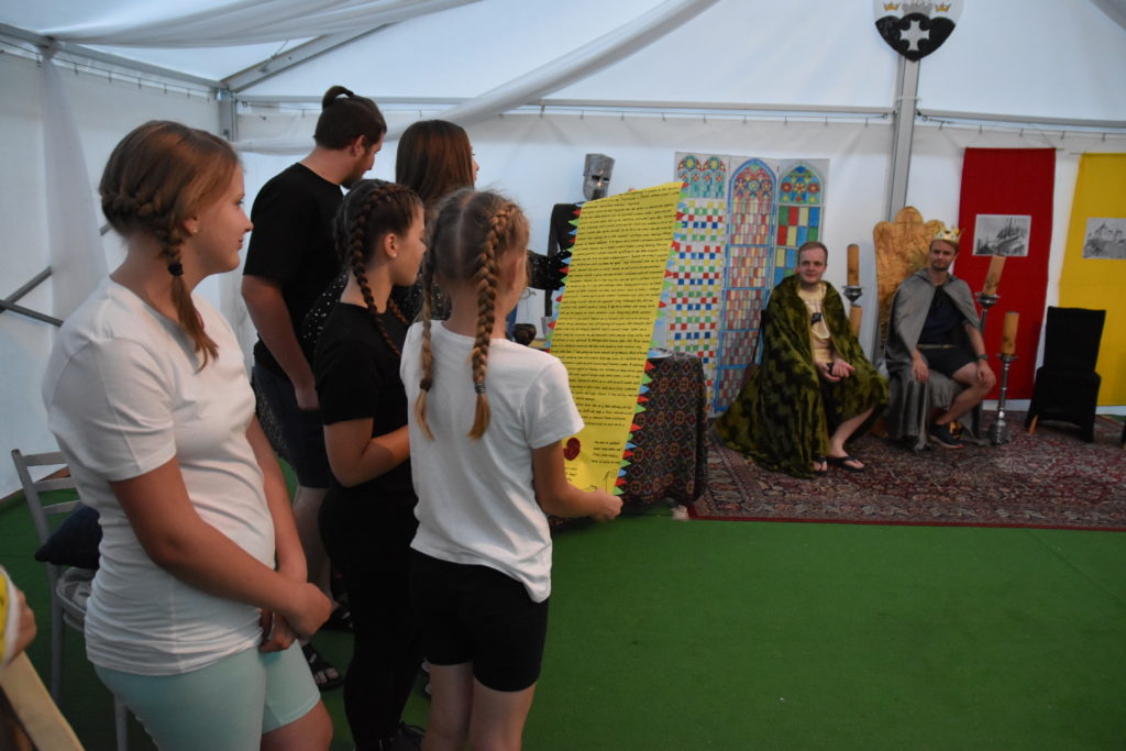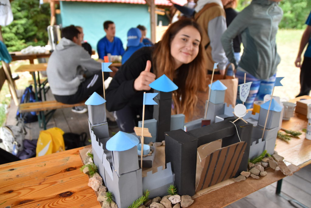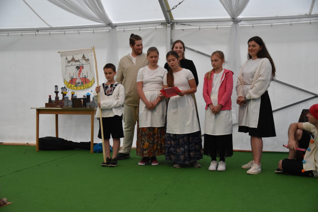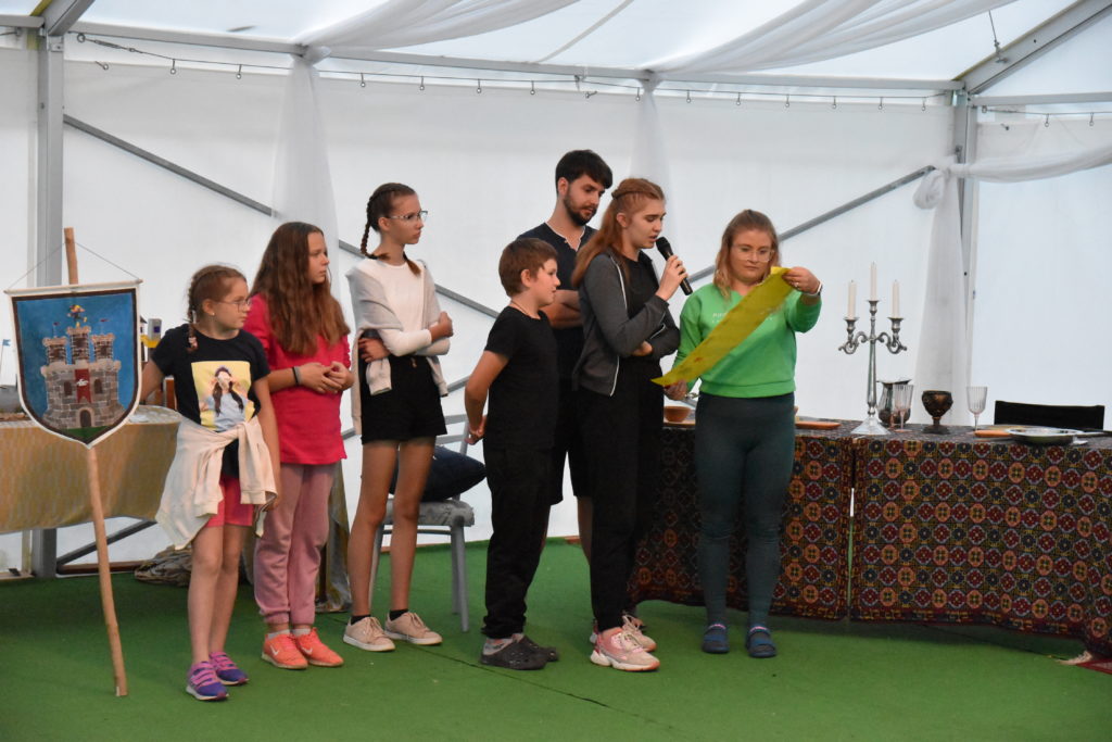 čakali, kým nám prichystajú služobnice naše komnaty, sme sa stihli zoznámiť s ostatnými rodmi, ktoré boli taktiež pozvané do Vášho kráľovstvo. A to tým, že sme si vytvorili a navzájom pripravili makety našich hradov. Nakoniec sme sa konečne usadili v Hostinci u starej bačkory. Večer sme sa spoločne pomodlili a ukončili tento deň. Aj keď sme sa moc dobre nevyspali, to nás neodradilo, aby sme nový deň začali v plnom nasadení. Doobeda sme zahájili