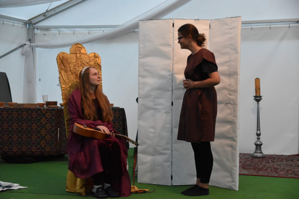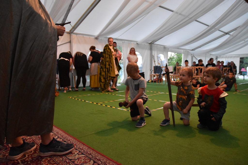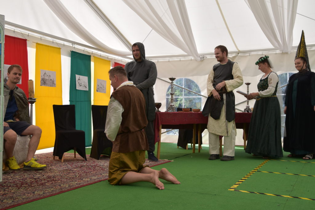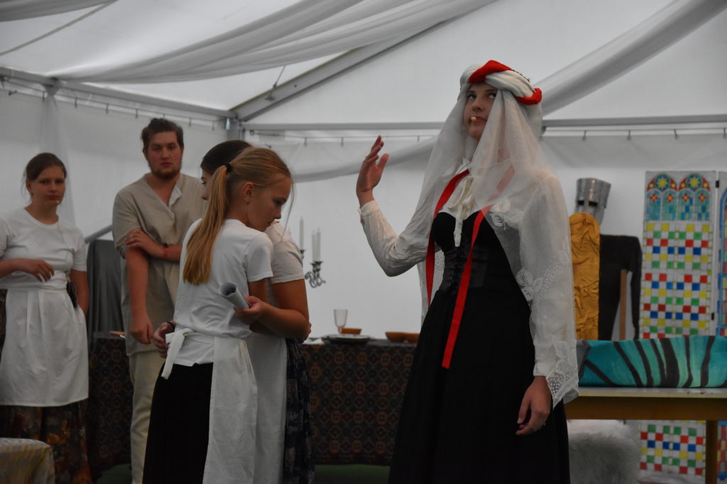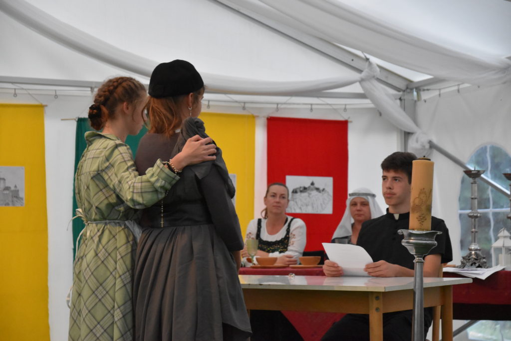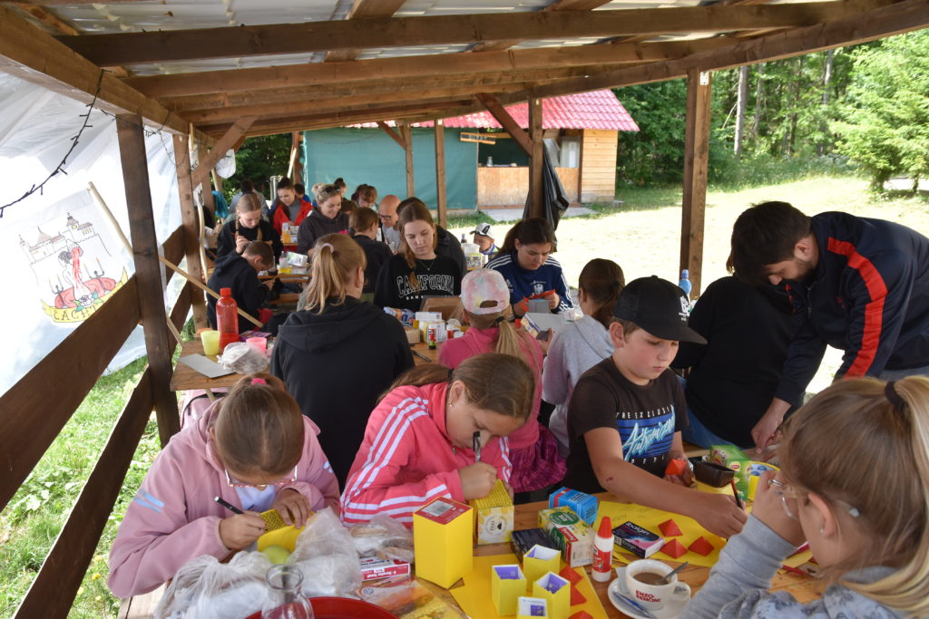čakali, kým nám prichystajú služobnice naše komnaty, sme sa stihli zoznámiť s ostatnými rodmi, ktoré boli taktiež pozvané do Vášho kráľovstvo. A to tým, že sme si vytvorili a navzájom pripravili makety našich hradov. Nakoniec sme sa konečne usadili v Hostinci u starej bačkory. Večer sme sa spoločne pomodlili a ukončili tento deň. Aj keď sme sa moc dobre nevyspali, to nás neodradilo, aby sme nový deň začali v plnom nasadení. Doobeda sme zahájili