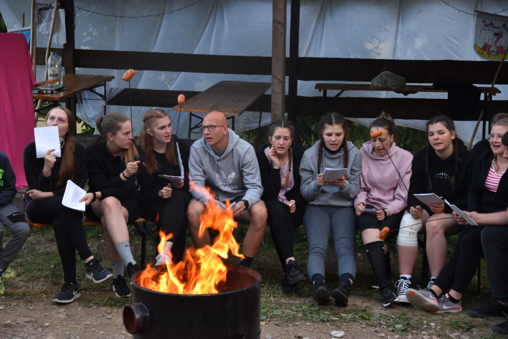 hasiť vedrami s vodou. Po úspešnom uhasení ohňov sme si spoločne vydýchli pri táboráku a.k.a.