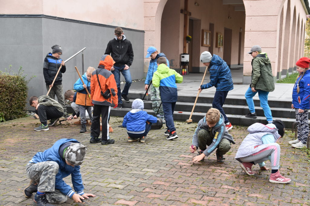 V jednu jesennú októbrovú sobotu sa uskutočnila brigáda pri kostole. Na správny štart a chuť do práce nám miništrantské stretko pripravilo raňajky v podobe chutných toastov a vianočky. Po sýtych raňajkách sme sa rozdelili na dve skupiny. Každý si doniesol vlastný šrobovák a hrable a o 9:30 sme sa pustili s nadšením do práce. Mladší Domkári čistili šrobovákmi dlažbu pred kostolom a my, dievčatá, sme hrabali lístie pred farou a kostolom. Chlapci toto lístie potom odvážali na fúrikoch za farskú budovu. Pri zbieraní jabĺčok zo stromov nás prišiel skontrolovať aj pán farár s úsmevom a povzbudením. Nesmela tu určite chýbať dobrá nálada a hudba. Do obeda sme vyčistili všetko, čo sa dalo a na konci sme sa občerstvili vianočkou a teplým čajom, ktoré zas prichystali staršie dievčatá.