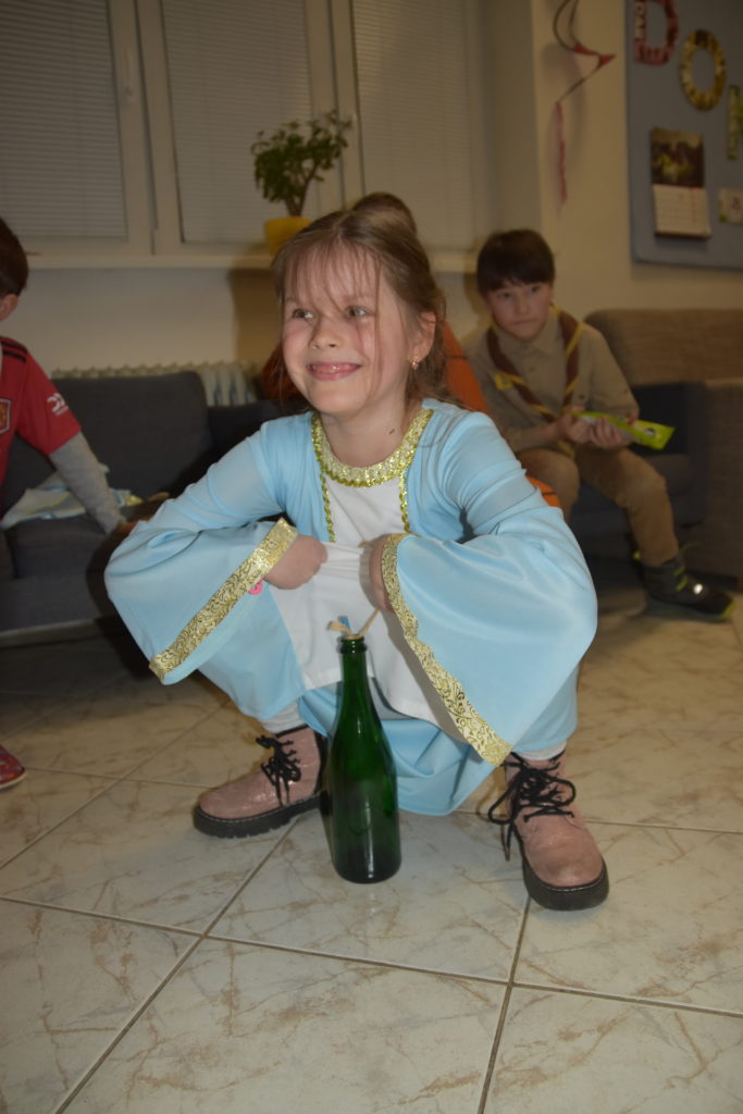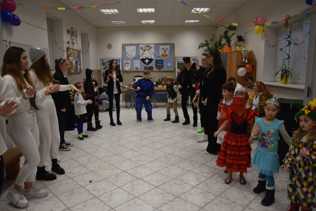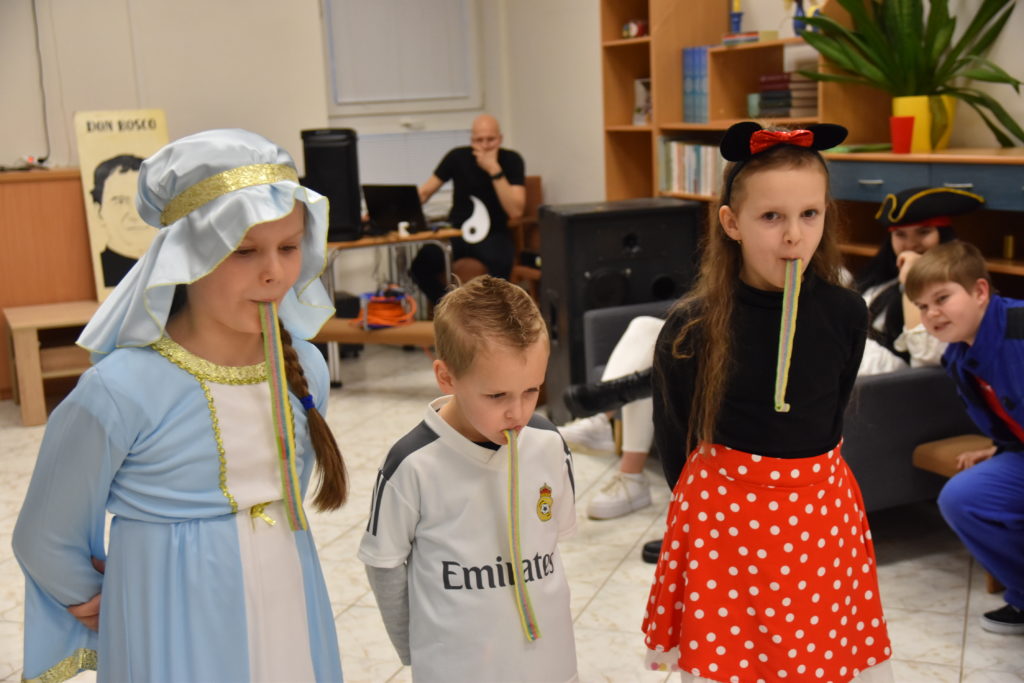 V túto zimnú sobotu (4.2.2023) sme usporiadali karneval a zavolali sme deti, animátorov aj rodičov, aby si tento deň prišli s nami užiť. Začali sme o 16:00. Karneval otvorilo dievčenské stretko, ktoré si pre nás pripravilo prepad, na ktorom sme sa všetci veľmi zasmiali. Karnevalom nás sprevádzala Miška Šoošová a Natália Chovanová, ktorá predstavovala masky. Dobre sme si zatancovali a hrali sme veľa hier: „Kto najrýchlejšie zje pelendrek vyhráva“, „Dogab sa!“ a rôzne dalšie tanečné súťaže… Vzadu bol pripravený stôl s občerstvením, ktoré obsluhovali šarmantné animátorky. Na záver tajná porota vybrala tri masky podľa troch kategórii: skupinová maska, najkrajšia a najkreatívnejšia maska. Výhercami sa stali Korenička a Soľnička, vodník a japonka.