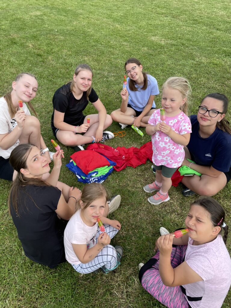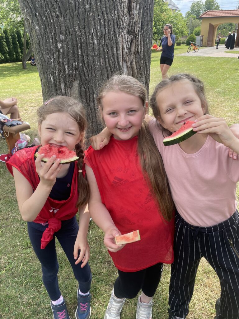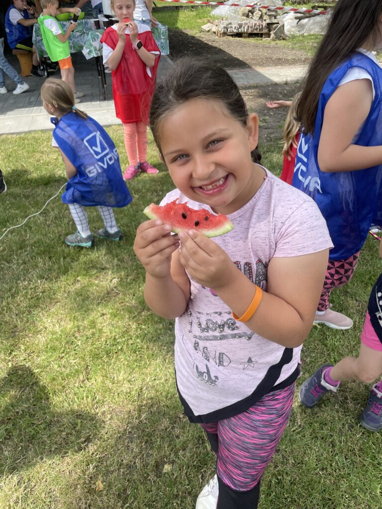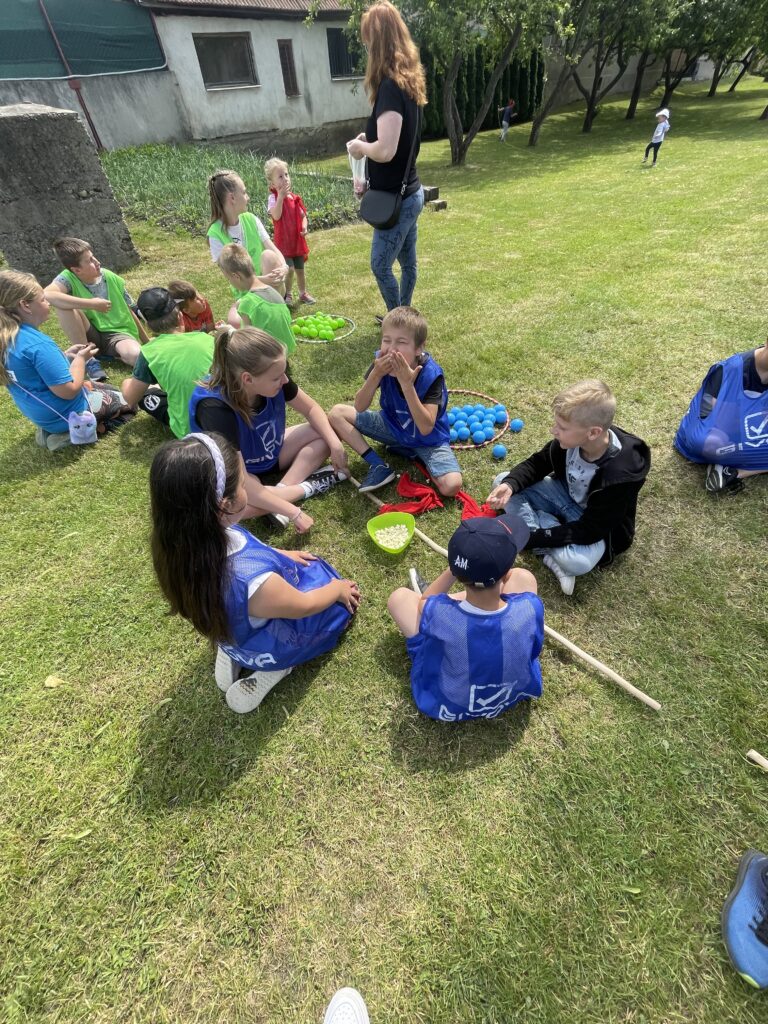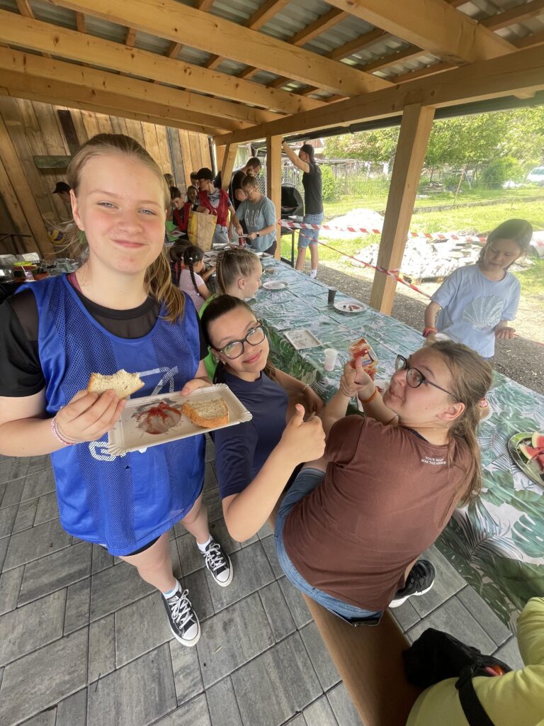 Začali sme menšou rozcvičkou, dievčatá verzus chlapci. Kým organizátori pod vedením Deny Timkovej pripravili ďalšiu hru, mali sme čas dať si niečo pod zub: melón, jahodové košíčky alebo muffiny, ktoré pripravili naše šikovné dievčatá.