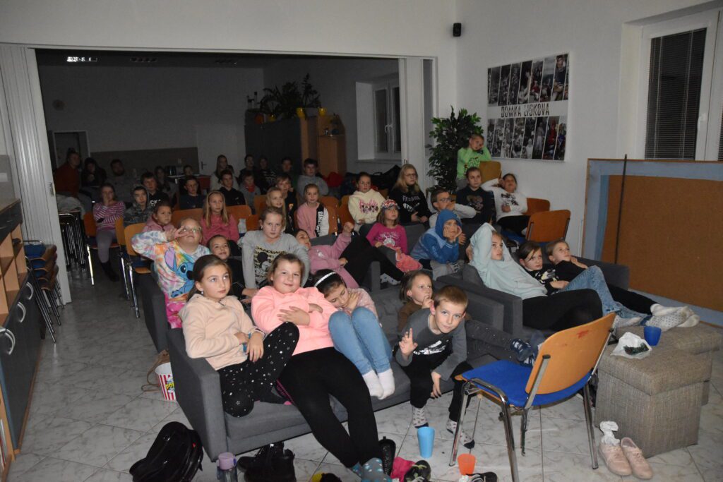 Domkárske akcie v liskovej sú zväčša športovo ladené a domkári v nich podávajú výkony hodné vrcholových športovcov, tak si naše animátorky povedali že si treba trochu vydýchnuť. A ako lepšie zrelaxovať ako pri dobrom filme a chutnom jedle?! Tento filmový večer sme si pustili rozprávku Rava a posledný drak. Bolo to plné akcie, dobrodružstva a napínavé až do samého konca, takže kto sa rozhodol prísť určite nelutoval. Neoddeliteľnosť súčasťou filmového večera je zaručene popcorn, preto ani teraz nechýbal a na záver ešte sladký doťuk v podobe muffinov. Po filme nasledoval kvíz a kto dával pozor a mal rýchle ruky si mohol odniesť niečo sladké. Samozrejme priestor na zlepšenie vždy je takže sa vidíme o rok!