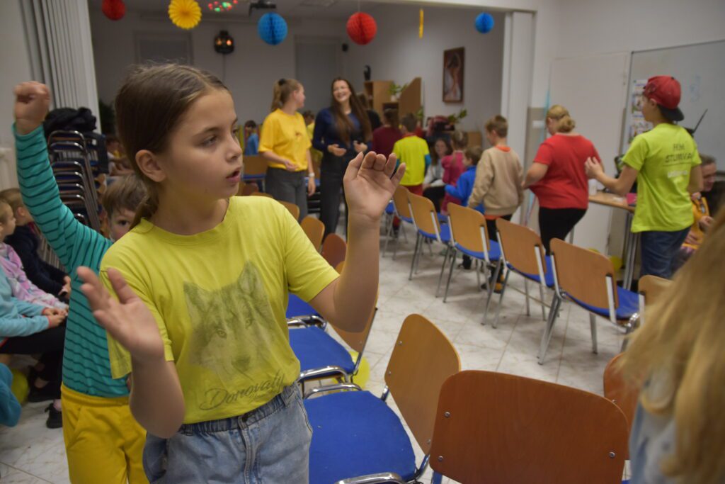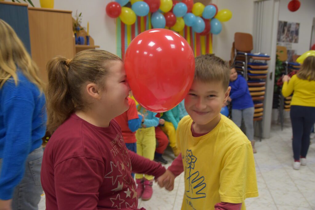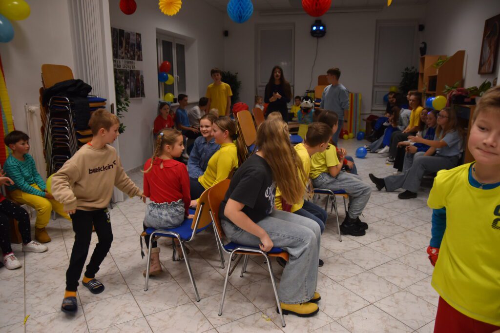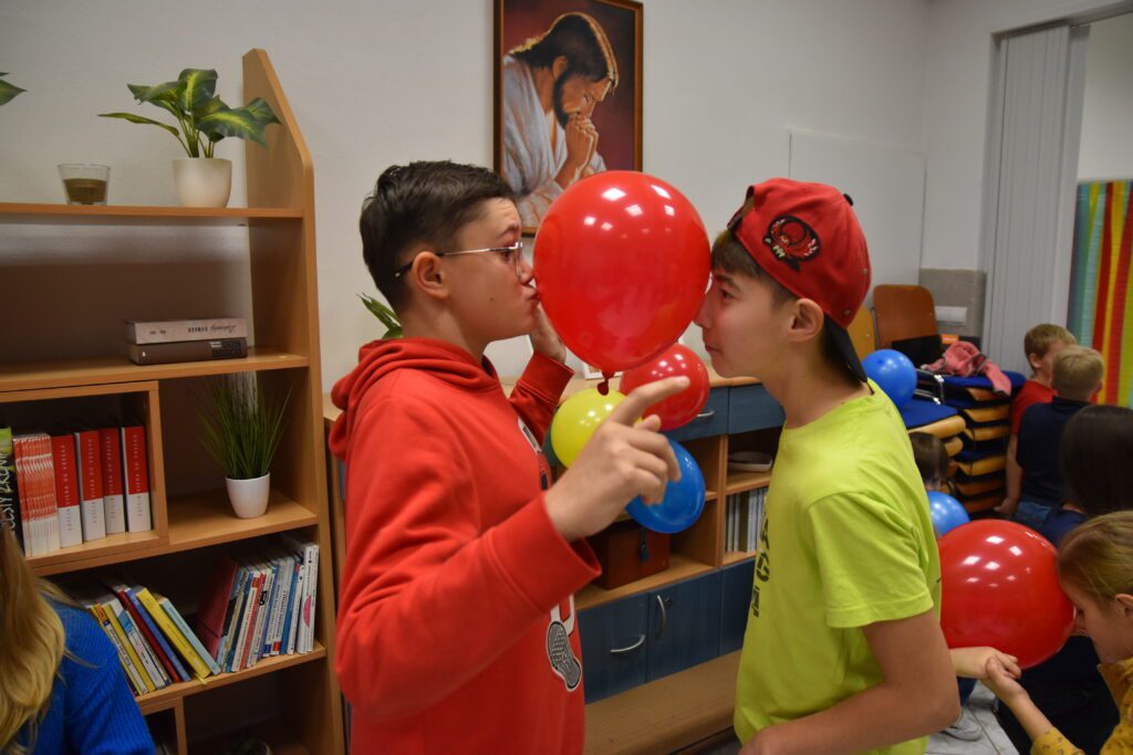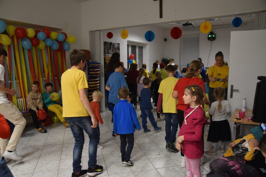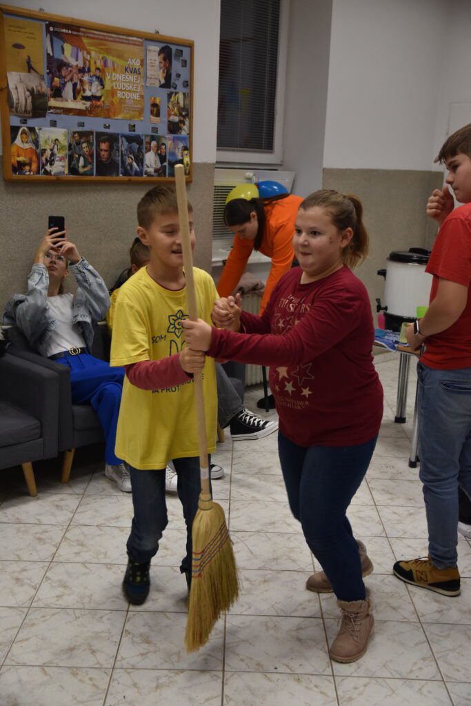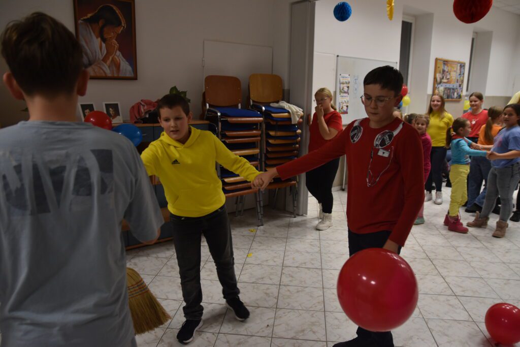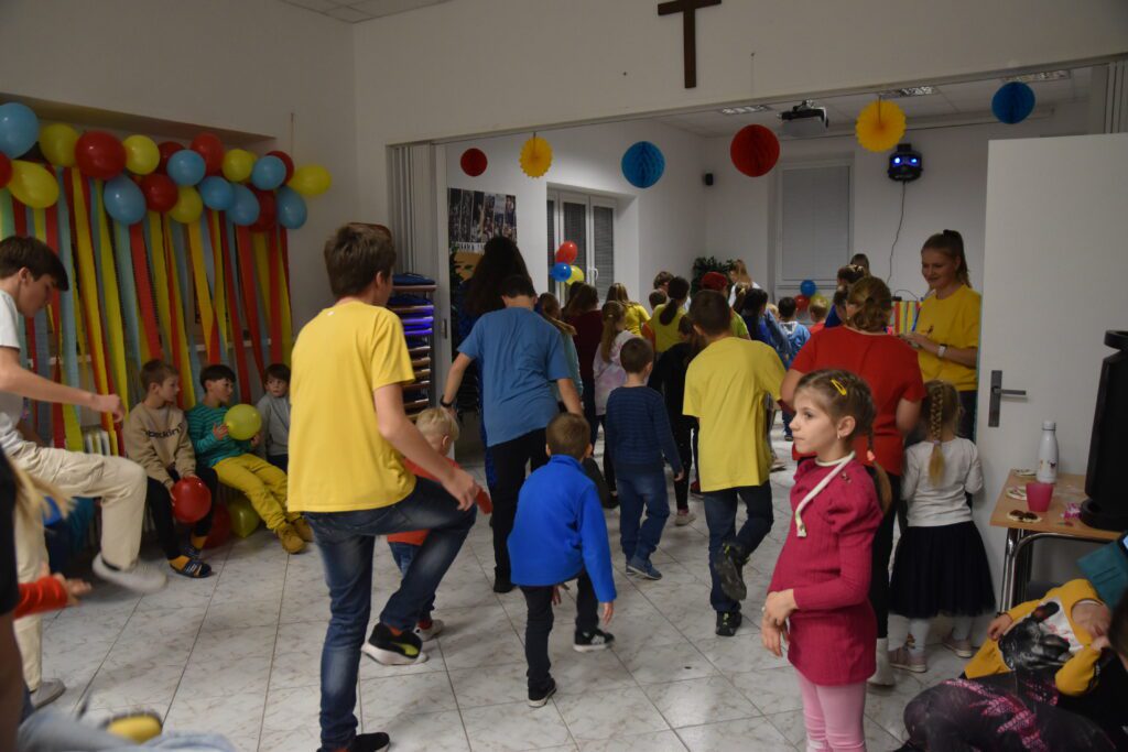 V jednu zasneženú sobotu (23.11) bola usporiadaná tancovačka. Dresscode boli tri farby, a to červená, modrá a žltá. Začalo sa o 17:00. Na začiatku sme sa pomodlili a začali tancovať belgický tanec. Potom sme sa občerstvili pri bufete a nabrali sily na ďalší tanec, a to Egyptský tanec (náš obľúbený ☺). Keď sme sa vytancovali, zahrali sme si rôzne hry, ako “kto dá prvý pero do flašky, vyhráva” alebo “kto namotá nitku na ceruzku prvý, vyhráva”. Deti si mohli vyberať z rôznych pekných cien. Ďalej sme mali stoličký a balónový tanec. Tancovali sa štyri „just dance tance“, pri ktorých sme sa nasmiali. Keď odbilo 20:00, tak sme sa pomodlili a s tým naša tancovačka skončila. Všetci sme sa poriadne zabavili a odišli domov.