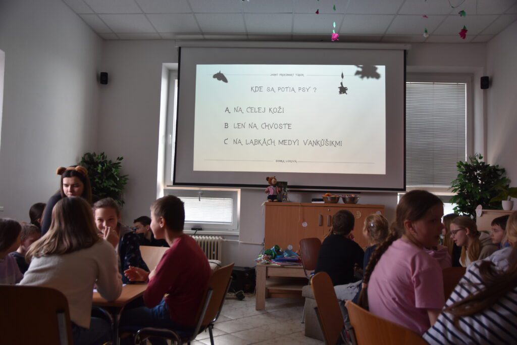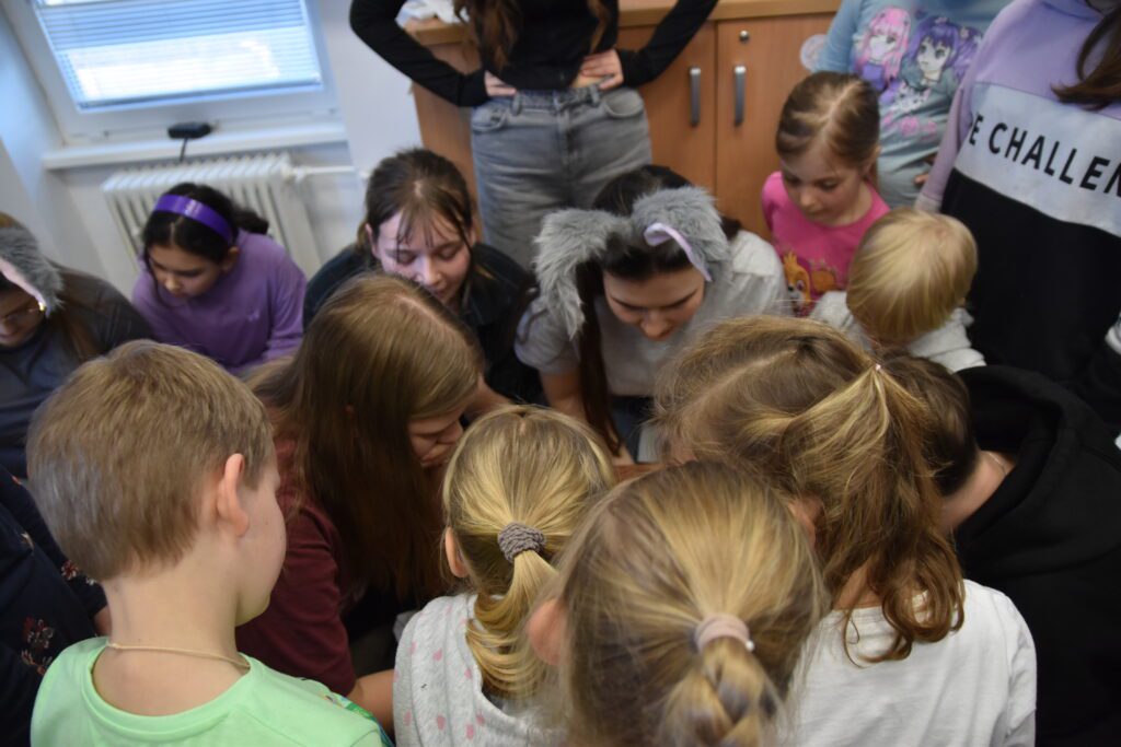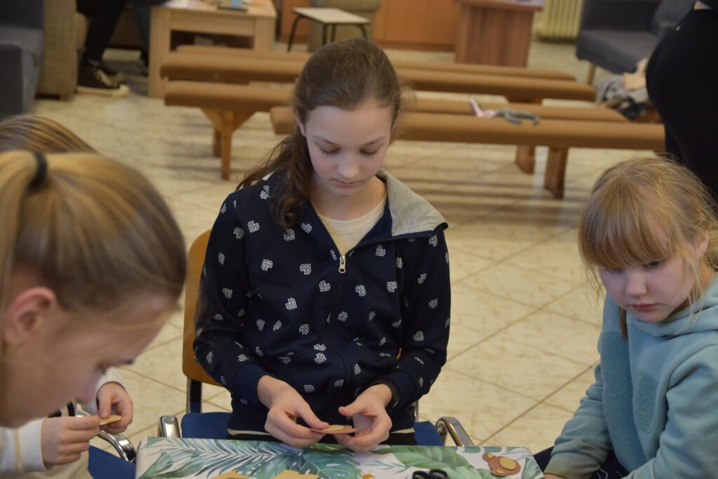 No hlavnou časťou pridedinského tábora samozrejme bývajú rôznorodé a zaujímavé aktivity, ktoré sme ani tento rok nemohli vynechať. Hneď na prvom bloku nás čakalo 50 úloh pre skupinku či jednotlivca. Zaujímavosťou bola chvíľková zastávka na celodennej poklone v našom kostole – veď máme za čo ďakovať. (Inak.. veľký obdiv všetkým, ktorí tento blok zvládli. Bol to riadny masaker.) Po malej obednej prestávke, na bloku číslo dva, sme si zas zmerali sily ako tím v rôznych stolových aj pohybových hrách. Ani sme sa nenazdali, a prvý deň bol za nami. Oddych? Jasné, že nie. Tretí blok spočíval totiž v pokladovke, kde sme museli na rôznych stanoviskách získať šifru (pri ktorej sa aj tým najbystrejším poriadne prehriali mozgové závity) a následne ju vylúštiť. Je hádam všetkým jasné, že po takejto vražednej kombinácii mozgového a telového vyťaženia, sme sa ledva vládali hýbať. Takže sme nemali inú možnosť, ako stráviť štvrtý blok pokojným, aj keď vôbec nie jednoduchým, vyrábaním medvedíkov, prasiatok, či zajačikov na niekoľko spôsobov. Aby sme však po takomto oddychu nevyšli z tempa, na piaty blok sme sa presunuli do telocvične, kde nám OT-čkári dokázali, že sme naozaj ešte nevideli všetky typy štafety. Po tomto dychberúcom doobedí plnom zápalu pre hru a pre tím, nasledoval, nanešťastie, posledný blok nášho tábora. No ak si myslíte, že to bolo už len priateľské posedenie pri hrách a rozhovoroch, tak ste na veľkom omyle. Tu sa totiž bojovalo o body doslova do poslednej sekundy. Ako je to možné? Pred vyhodnotením totiž skupinky bojovali v kvíze o zvieratkách. A namôjdušu, sa medzi nimi našli budúci nádejní zoológovia. No aj keď každý do toho dal všetko, niekto predsa len musel mať o trolilinku šťastia viac a skončiť na prvom mieste. To sa tento rok podarilo Julke Rusnáčkovej, Aničke Strakovej a Táničke Lakovej, takže gratulujeme. Celým týždňom nás samozrejme sprevádzala aj modlitba, ktorou sme to aj ukončili – všetci, ktorí chceli, mohli ísť spoločne na krížovú cestu a svätú omšu.