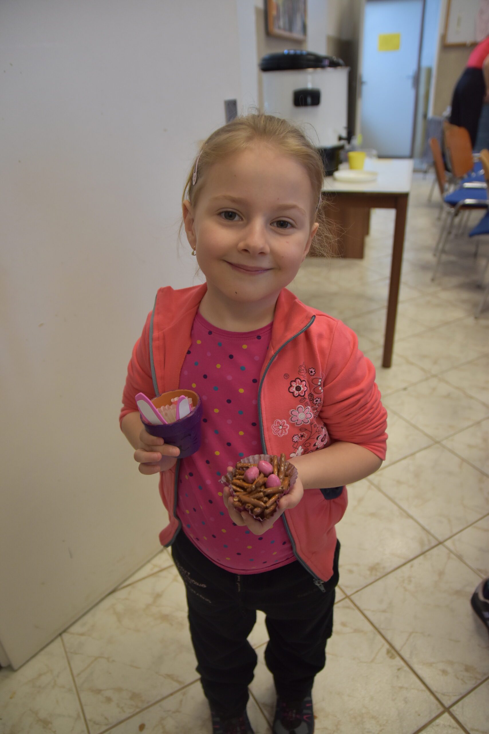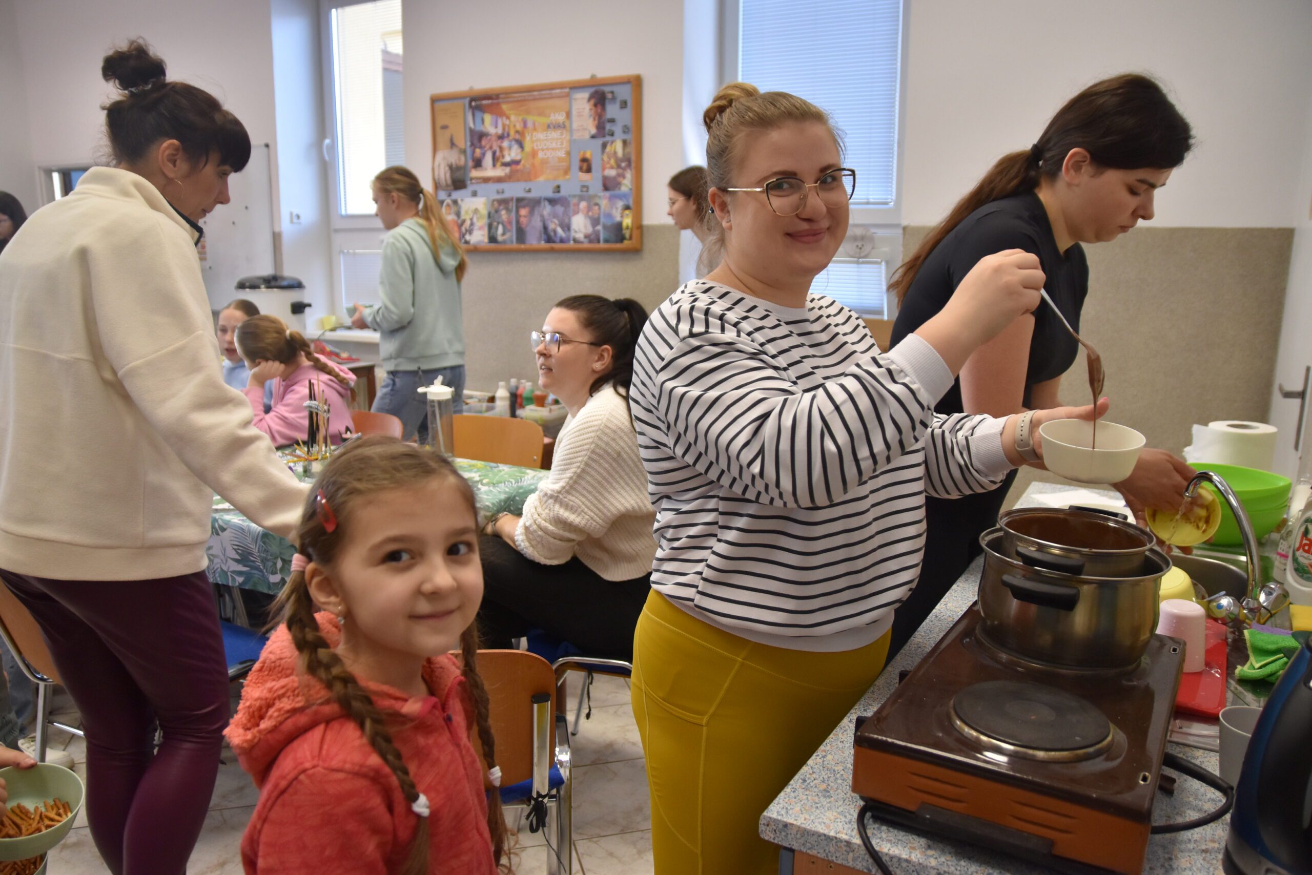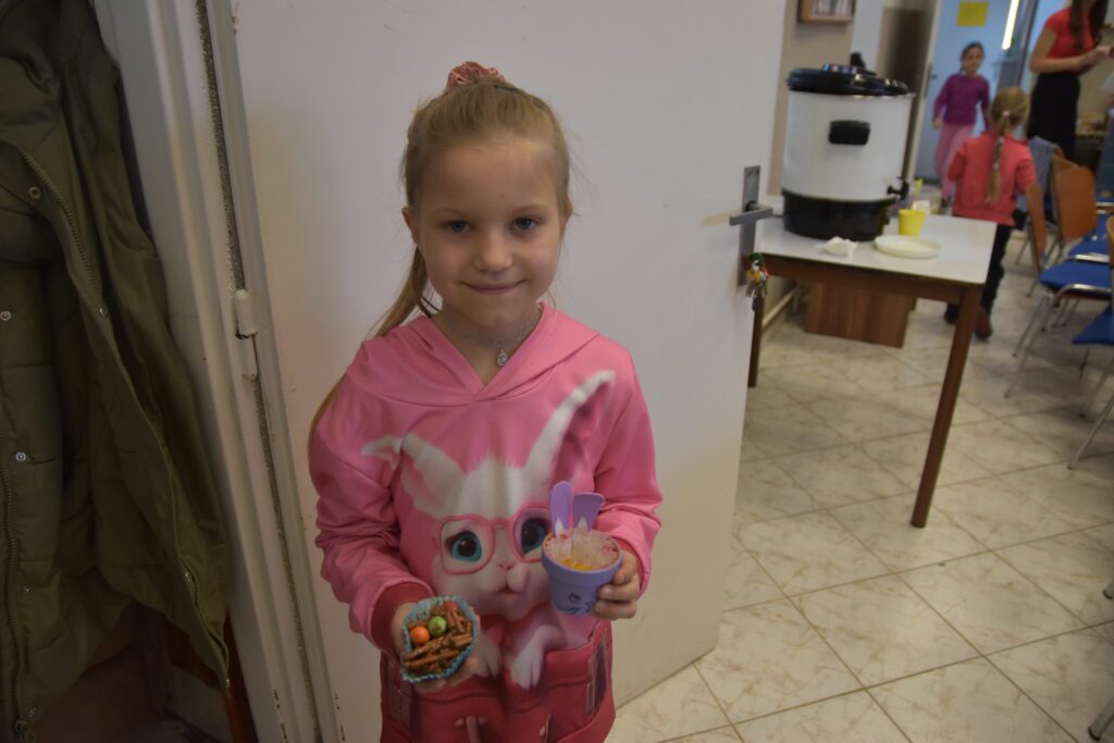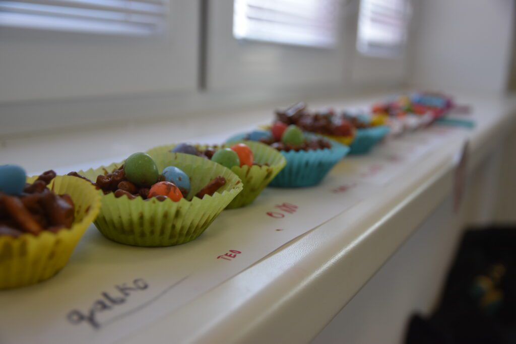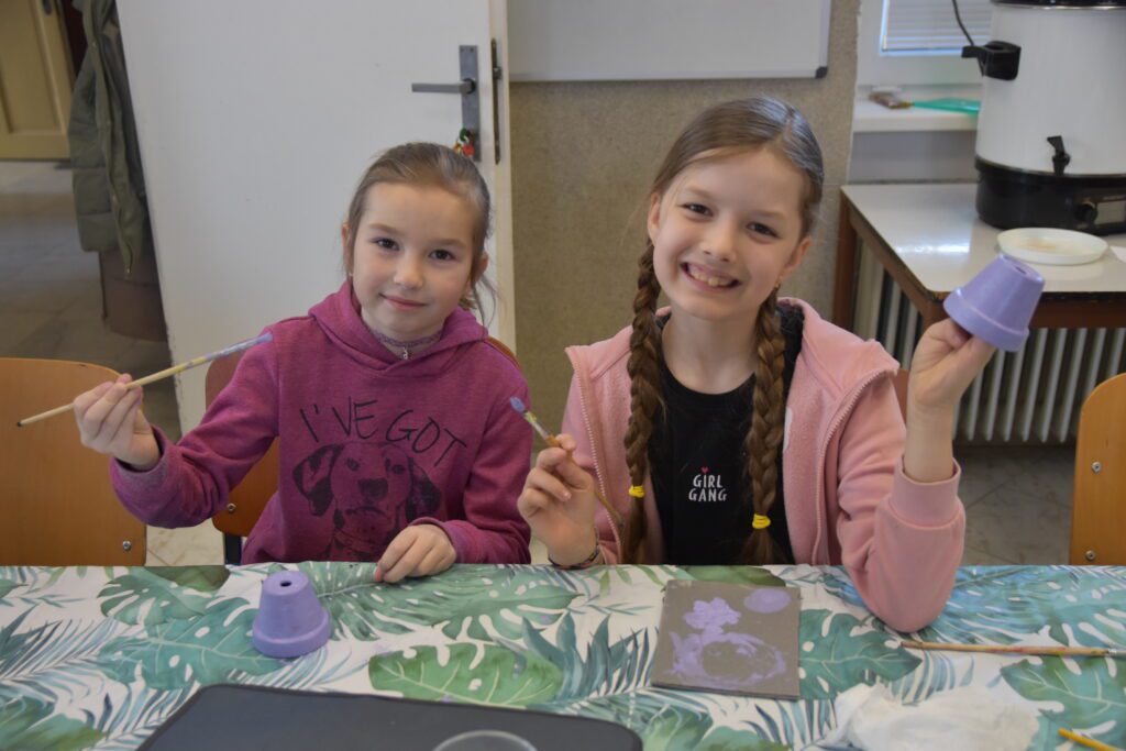 Už tradične sme sa stretli na predveľkonočnom TVORIVO A CHUTNE. Na veľkonočnom tvorení sa zapojili šikovné ruky, ale aj maškrtné jazýčky a výsledok stál skutočne za to! Deti sa s nadšením pustili do výroby veľkonočných dekorácií. Dievčatá si vyrábali zajačikov z kvetináčov, ktorým nechýbali ušká a milé tváričky. Chlapci si vyskúšali prácu s drôtikom a vyrobili originálne veľkonočné vajíčka, ktoré dozdobili gorálkami. A čo by to bolo za akciu bez niečoho sladkého a chutného? A tak sme si vytvorili hniezda s farebnými vajíčkami z tyčiniek a chutnej čokolády, ktorú nám krvopotne rozpustila naša šikovná Natál. Užili sme si príjemné doobedie plné tvorenia. A za to ďakujeme Miške Š., ktorá si túto akciu pripravila ale aj tým, ktorí sa akýmkoľvek spôsobom podieľali na príprave a priebehu akcie.