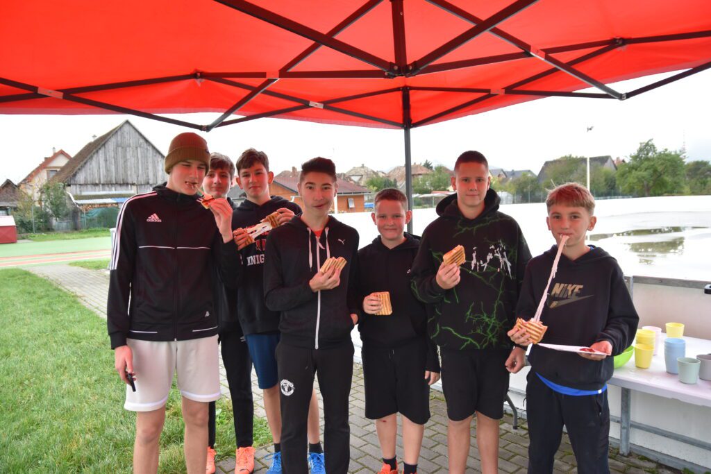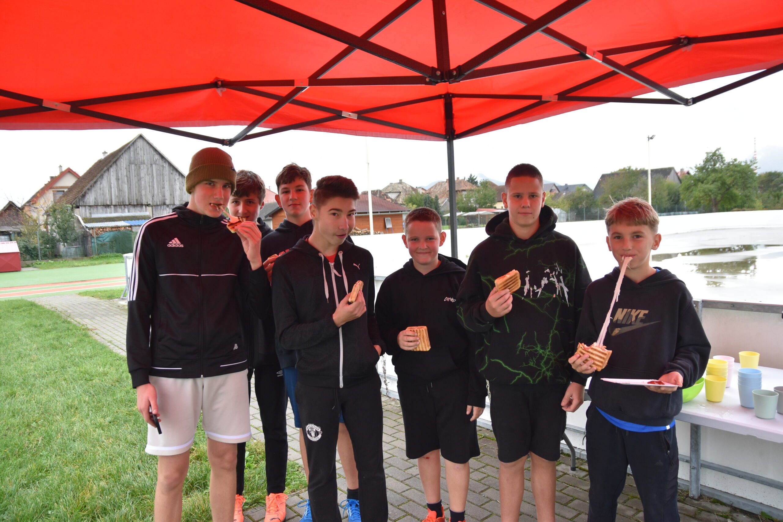 V sobotu 11.10.2025 sa v areáli našej školy konal dlho očakávaný futbalový turnaj Domky, ktorý sa konal na umelej tráve. Hoci sme ešte ráno váhali, či sa turnaj kvôli sychravému a upršanému počasiu vôbec uskutoční, napokon sme sa rozhodli nevzdávať to – a urobili sme veľmi dobre. Na turnaji sa zúčastnilo veľa chlapcov, ktorí si prišli zmerať svoje sily a medzi nimi aj jedna futbalistka – Natália K., ktorá predviedla skvelý výkon. Atmosféra bola od začiatku priateľská a plná nadšenia. Hráči bojovali férovo, povzbudzovalo sa z každej strany a na ihrisku nechýbala radosť ani zábava. Najlepším strelcom sa stal Kubo Vrábel no a najlepším brankárom zas Tobo Lesák. O skvelé občerstvenie sa postarali naše šikovné dievčatá, ktoré nám pripravili výborné toasty, ktoré potešili všetkých a hráčom dodali energiu do ďalších zápasov. Aj napriek vlhkému počasiu sme prežili skvelé športové dopoludnie, plné pohybu, tímového ducha a dobrej nálady. Ďakujeme všetkým hráčom, organizátorom a podporovateľom, ktorí prispeli k tomu, že sa turnaj vydaril na výbornú. Tešíme sa na ďalšie spoločné akcie!