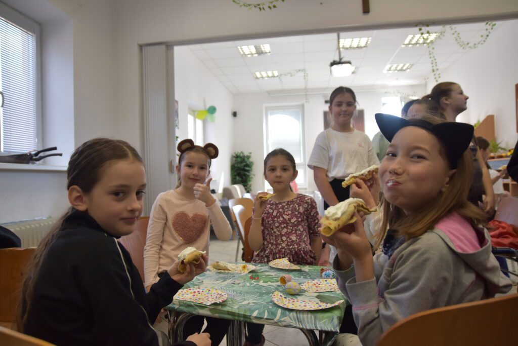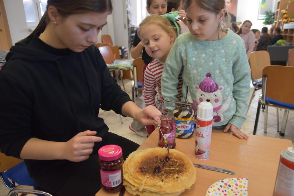 Na akcii tvorivo a chutne sme opäť zažili dopoludnie plné tvorivosti, radosti a dobrého jedla. Najskôr sme sa pustili ,,do tvorivo“. Z obyčajných vajíčok sa v našich rukách postupne menili farebné vzdušné balóny. Pomocou farieb, špagátikov a košíkov vznikali originálne výtvory, ktoré zdobili rôzne vzory a veselé farby. Každý balón bol jedinečný. Keď sme dokončili naše balóny, prišiel čas na druhú – veľmi chutnú – časť. Spoločne sme si pochutnali na palacinkách, ktoré pripravili animátorky a animátori. Dopoludnie bolo plné radosti, tvorivosti a dobrej nálady. Odchádzali sme s krásnymi výtvormi, plnými bruškami a najmä s pocitom príjemne stráveného času.